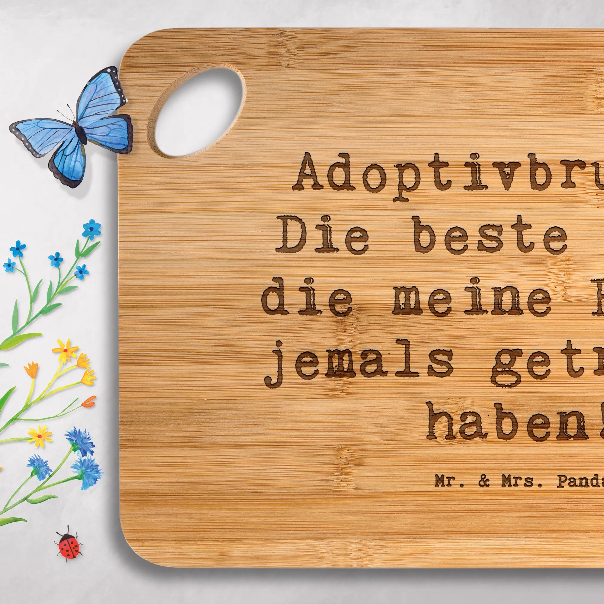Suchst Du ein liebevolles Geschenk, das praktisch und persönlich ist? Unser Schneidebrett von Mr. & Mrs. Panda mit dem Motiv „Adoptivbruder“ vereint Funktionalität mit Herz. Ob als Frühstücksbrett, Holzbrett oder Holzschneidebrett – dieses Brett ist perfekt für Frühstück, Vesper oder als hübsches Käsebrett bei gemeinsamen Abenden.
