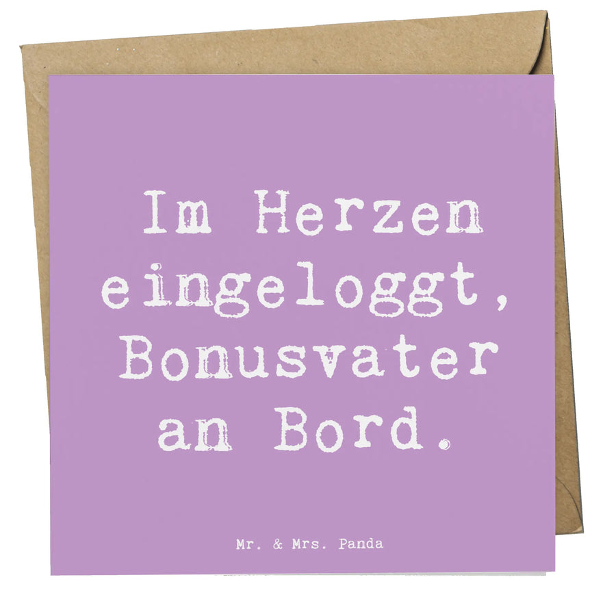 Die Deluxe Karte "Bonusvater" von Mr. & Mrs. Panda ist das perfekte Geschenk für alle, die ihren Bonusvater besonders wertschätzen. In einer Welt, in der Familie und Zusammenhalt immer wichtiger werden, präsentiert sich diese wunderschöne und hochwertige quadratische Karte als liebevolle Geste der Dankbarkeit und Zuneigung. Mit ihrem charmanten Design und dem einfühlsamen Motto "Im Herzen eingeloggt, Bonusvater an Bord." wird die Rolle des Bonusvaters in der Familie auf zauberhafte Weise gewürdigt.