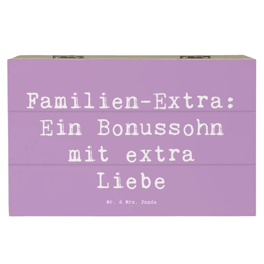 Die wunderschöne Holzkiste von Mr. & Mrs. Panda ist das perfekte Geschenk für Deinen Bonussohn! Mit dem liebevollen Spruch 'Familien-Extra: Ein Bonussohn mit extra Liebe' bringt sie eine einzigartige Botschaft der Wertschätzung in jedes Zuhause. Die robuste Holzfaser sorgt dafür, dass diese Erinnerungsbox nicht nur schön aussieht, sondern auch langlebig ist.