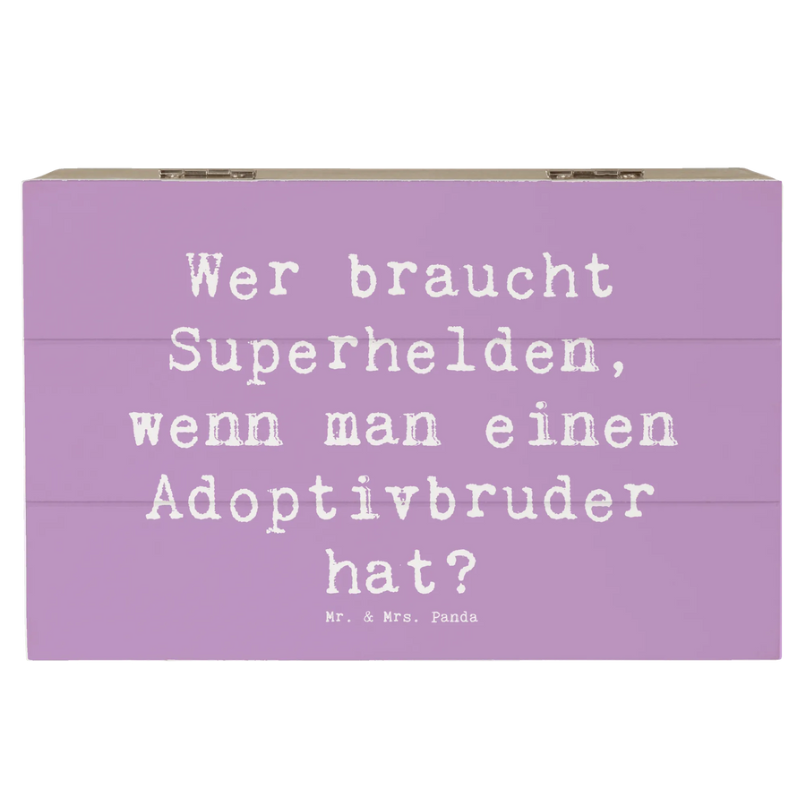 Besonders die tiefgründige Verbindung zwischen Geschwistern wird durch das Motiv 'Wer braucht Superhelden, wenn man einen Adoptivbruder hat?' perfekt untermalt. Die Kiste eignet sich auch wunderbar als Geschenkbox, um ein besonderes Präsent wiederverwendbar und nachhaltig verpacken zu können.