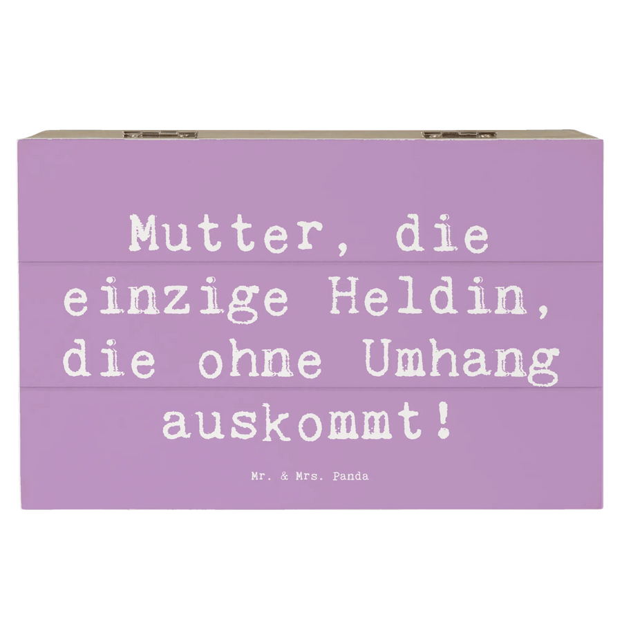 Die wunderschöne Holzkiste von Mr. & Mrs. Panda ist das ideale Geschenk für jede Mutter oder für einen geliebten Menschen, der eine Mutter ehrt. Mit dem charmanten Spruch "Mutter, die einzige Heldin, die ohne Umhang auskommt!" wird diese Erinnerungsbox zur perfekten Aufbewahrung für all die wertvollen Schätze, die Mamas im Laufe der Jahre gesammelt haben. Ob es sich um Fotos der kindlichen Unschuld, Zeichnungen, Erinnerungen an besondere Anlässe wie Kommunion oder Konfirmation handelt, hier finden all die liebevollen Erinnerungen ihren Platz.