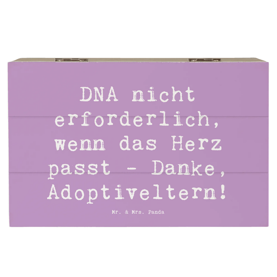 Entdecke die wunderschöne Holzkiste von Mr. & Mrs. Panda, die nicht nur ein praktischer Aufbewahrungsort ist, sondern auch ein liebevolles Geschenk für Adoptiveltern. Mit dem herzerwärmenden Spruch "DNA nicht erforderlich, wenn das Herz passt - Danke, Adoptiveltern!" wird diese Kiste zu einem ganz besonderen Schatz für all die Erinnerungen, die in ihr bewahrt werden.