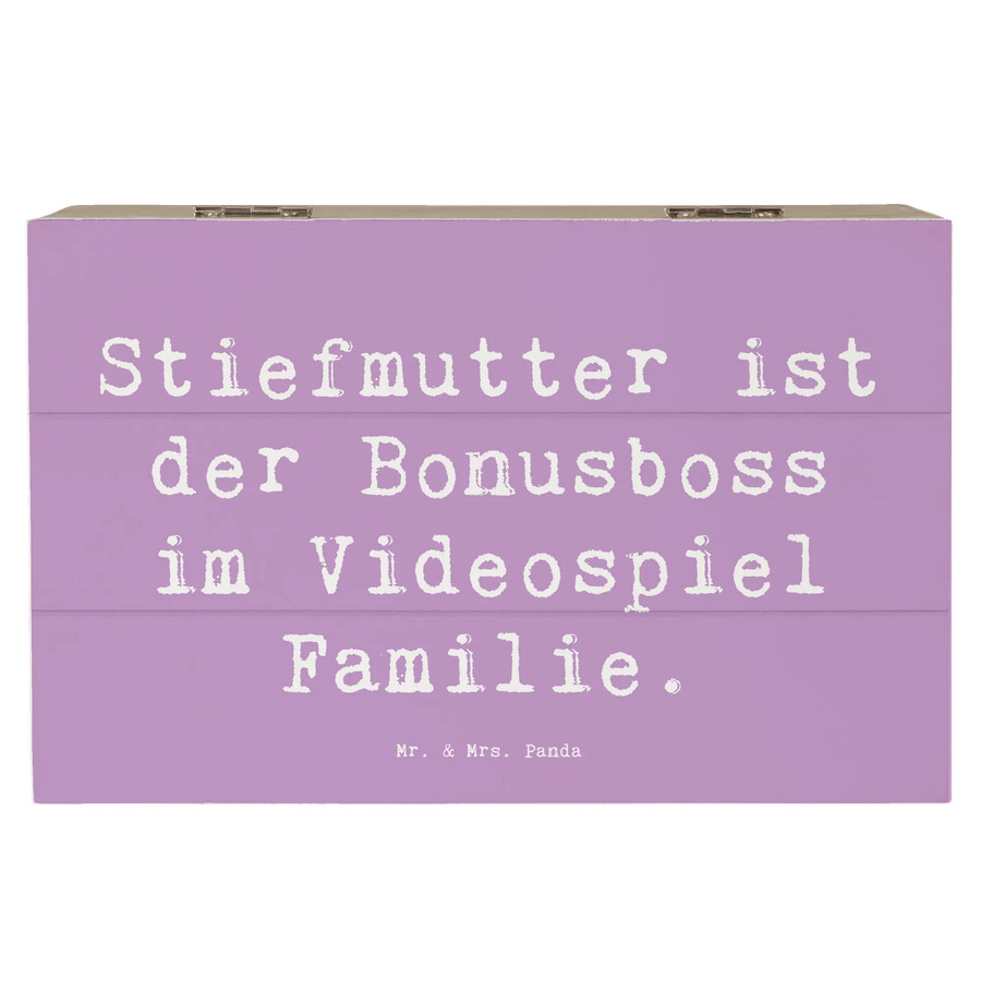 Die wunderschöne Holzkiste von Mr. & Mrs. Panda ist das perfekte Geschenk für all jene, die eine Stiefmutter in ihrem Leben haben. Mit der charmanten Aufschrift "Stiefmutter ist der Bonusboss im Videospiel Familie" bringt diese Kiste nicht nur ein Lächeln, sondern auch eine besondere Wertschätzung für die oft herausfordernde, aber auch bereichernde Rolle einer Stiefmutter.