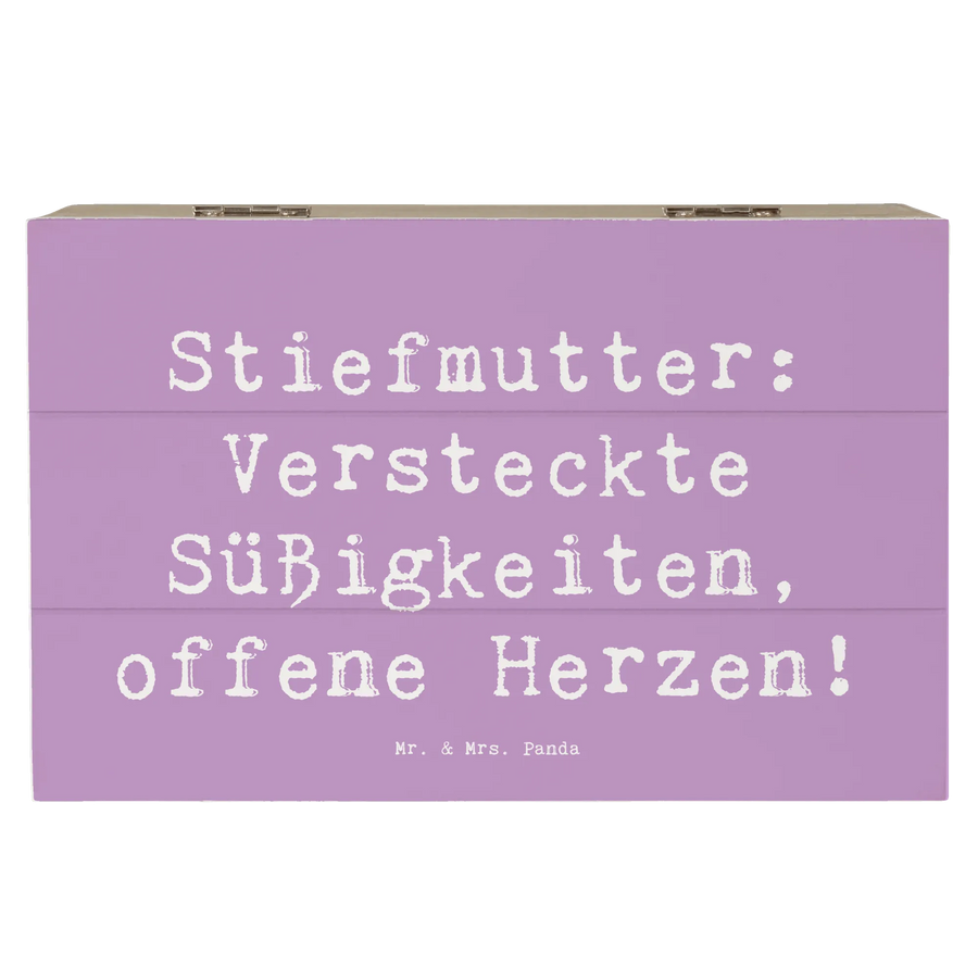 Die wunderschöne Holzkiste von Mr. & Mrs. Panda ist das perfekte Geschenk für all jene, die eine besondere Stiefmutter in ihrem Leben haben. Mit dem liebevollen Motiv 'Stiefmutter: Versteckte Süßigkeiten, offene Herzen!' wird diese Kiste zu einem echten Hingucker.