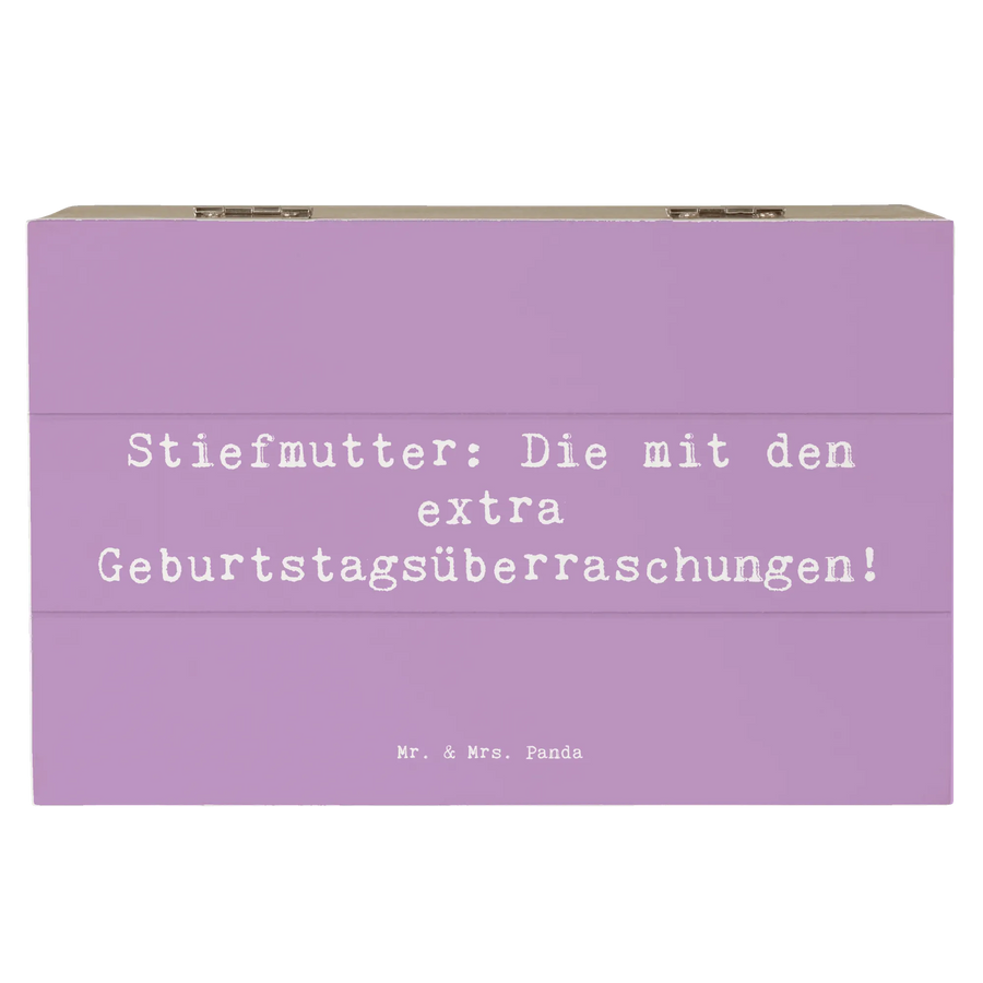 Die Holzkiste "Stiefmutter: Die mit den extra Geburtstagsüberraschungen!" von Mr. & Mrs. Panda ist das ideale Geschenk für alle, die in einer Patchwork-Familie leben oder diese schätzen. Die Kiste aus robuster Holzfaser ist nicht nur ein stilvoller Aufbewahrungsort für die schönsten Erinnerungen, sondern auch ein liebevolles Geschenk zum Geburtstag, zu besonderen Anlässen oder einfach so, um ganz klar zu zeigen, wie sehr du deine Stiefmutter schätzt.