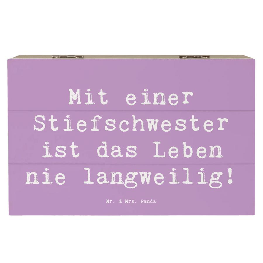 Mit dem Spruch 'Mit einer Stiefschwester ist das Leben nie langweilig!' wird die Kiste noch persönlicher und zeigt, wie wichtig diese besondere Verbindung für Dich ist. Die attraktive Lavendeltraum-Farbe sorgt zudem dafür, dass sie in jedem Raum ein schöner Hingucker ist.