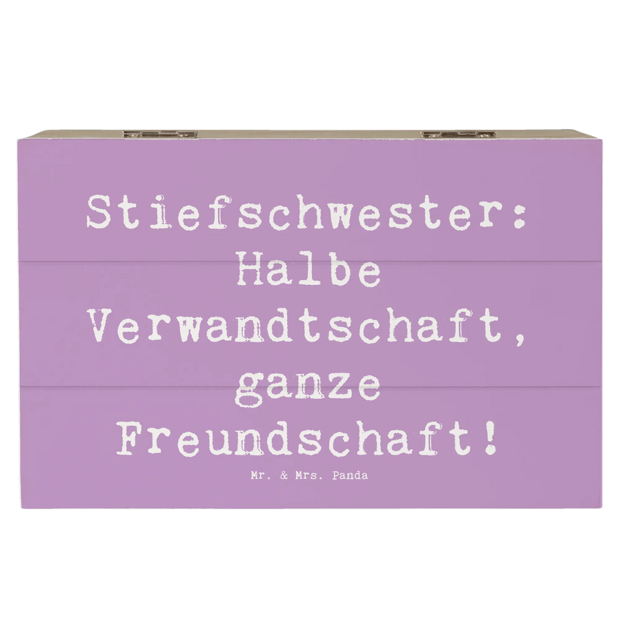 Die wunderschöne Holzkiste von Mr. & Mrs. Panda ist das perfekte Geschenk für Deine Stiefschwester. Sie vereint nicht nur Funktionalität, sondern auch das liebevolle Motto: "Stiefschwester: Halbe Verwandtschaft, ganze Freundschaft!" Diese liebevoll gestaltete Kiste bietet den idealen Aufbewahrungsort für all Deine wertvollen Erinnerungen und Geschenke.