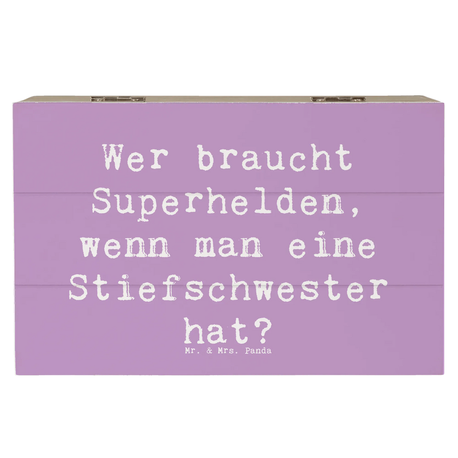 Diese wunderschöne Holzkiste von Mr. & Mrs. Panda ist das perfekte Geschenk für Deine Stiefschwester! Egal zu welchem Anlass, sei es ein Geburtstag, ein Feiertag oder einfach nur ein "Danke", diese exquisite Kiste bringt garantiert Freude. Mit dem liebevollen Spruch "Wer braucht Superhelden, wenn man eine Stiefschwester hat?" feierst Du die einzigartige Verbindung zwischen Geschwistern und schaffst gleichzeitig einen besonders emotionalen Moment.