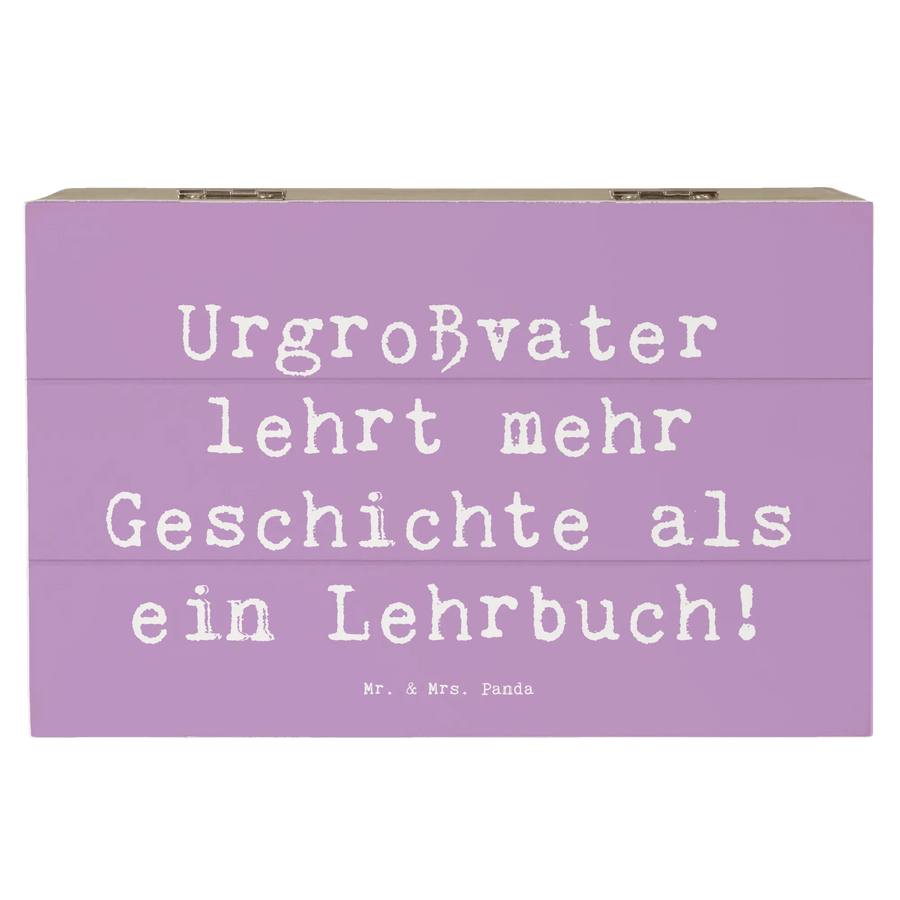 Die wunderschöne Holzkiste von Mr. & Mrs. Panda ist das perfekte Geschenk für jeden Anlass. Mit dem bezaubernden Motiv "Urgroßvater lehrt mehr Geschichte als ein Lehrbuch!" eignet sie sich besonders für Familienfeiern, wie Geburtstagsfeiern, Jahrestage oder einfach als tolle Erinnerungskiste.