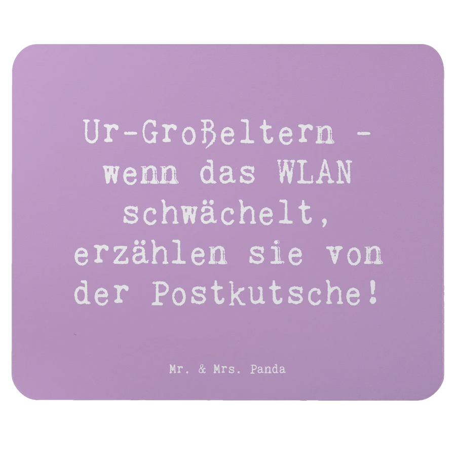 Das Mauspad "Ur-Großeltern" von Mr. & Mrs. Panda ist das perfekte Geschenk für alle, die ihre Familie und insbesondere die älteste Generation ehren möchten. Mit einem charmanten Slogan, der die Weisheit und die Geschichten unserer Ur-Großeltern widerspiegelt – "Wenn das WLAN schwächelt, erzählen sie von der Postkutsche!" – wird dieses Mauspad zu einem liebevollen Begleiter im Homeoffice oder Büro.
