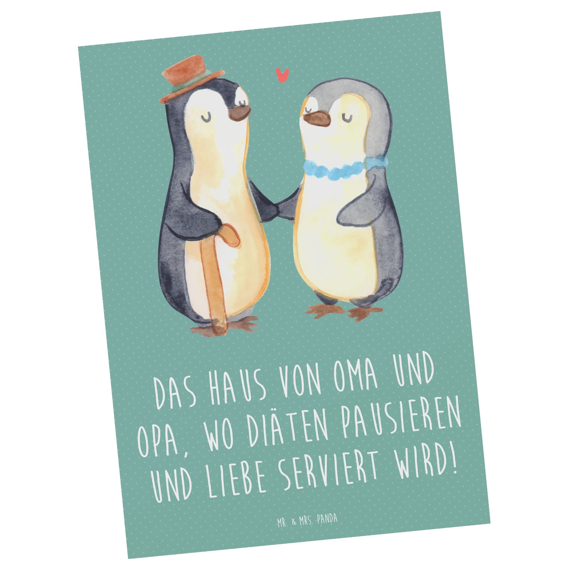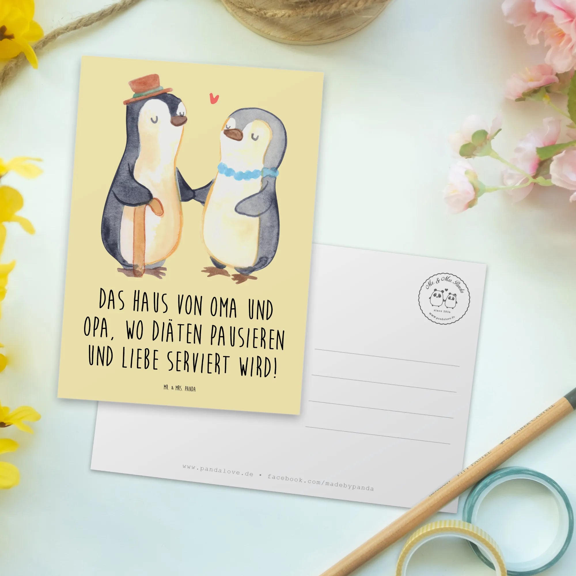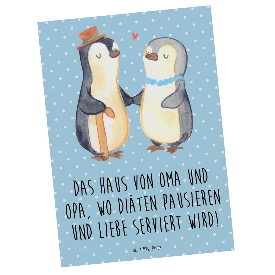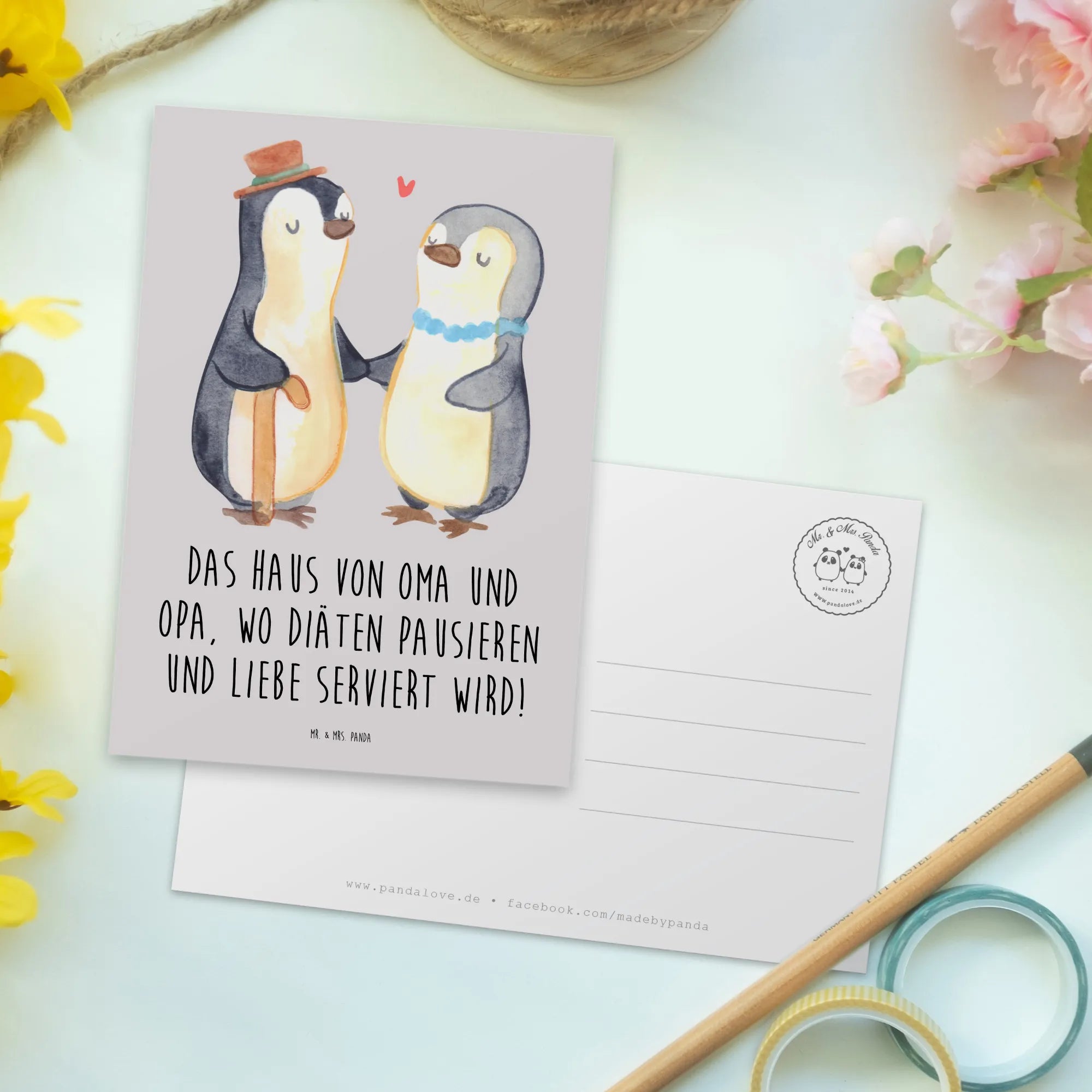 Entdecke die zauberhafte Postkarte von Mr. & Mrs. Panda mit dem liebevollen Motiv "Großeltern" aus unserer besonderen Kollektion Familie & Verwandte! Diese einzigartige Postkarte ist perfekt, um Deinen Großeltern zu zeigen, wie sehr Du sie schätzt. Der witzige Spruch "Das Haus von Oma und Opa, wo Diäten pausieren und Liebe serviert wird!" bringt sicherlich ein Lächeln auf ihre Gesichter.