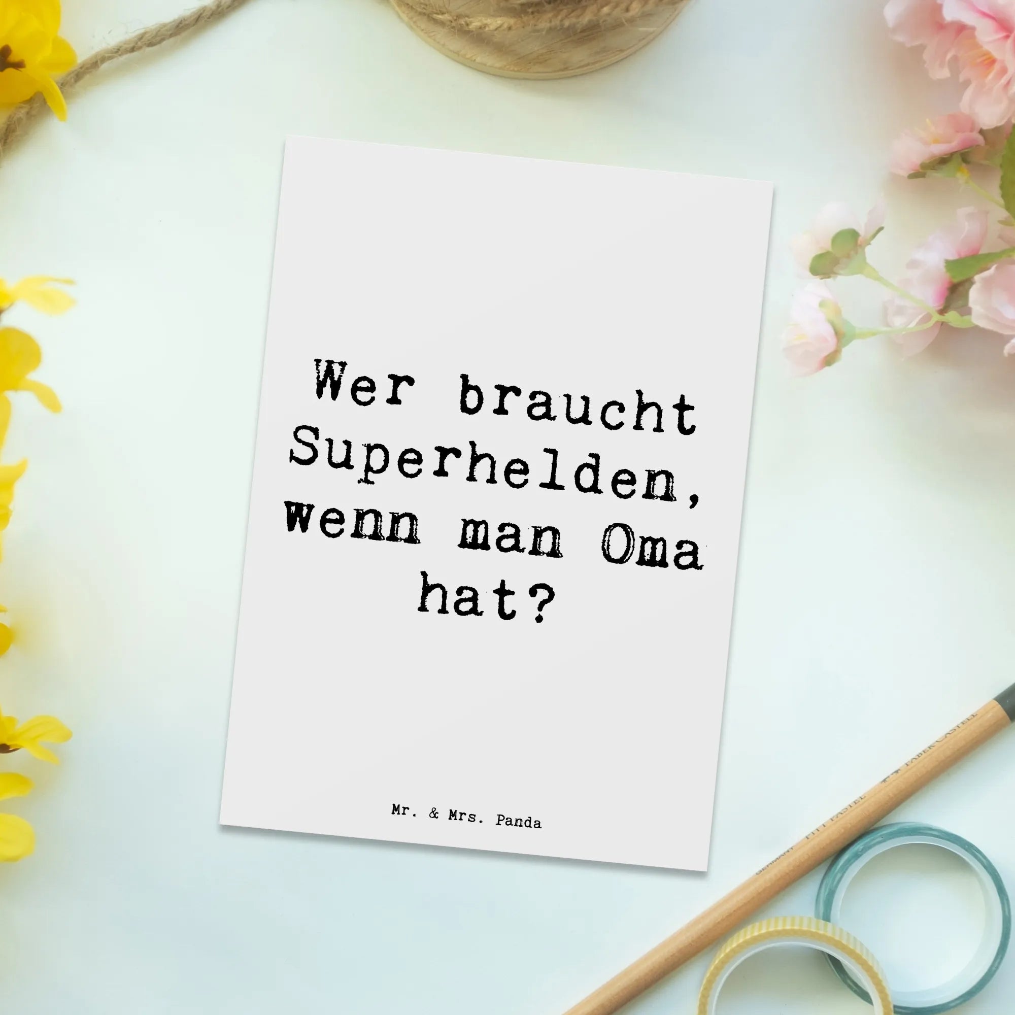 Postkarte & Grußkarte für Oma – Mit dem liebevollen Spruch „Wer braucht Superhelden, wenn man Oma hat?“
