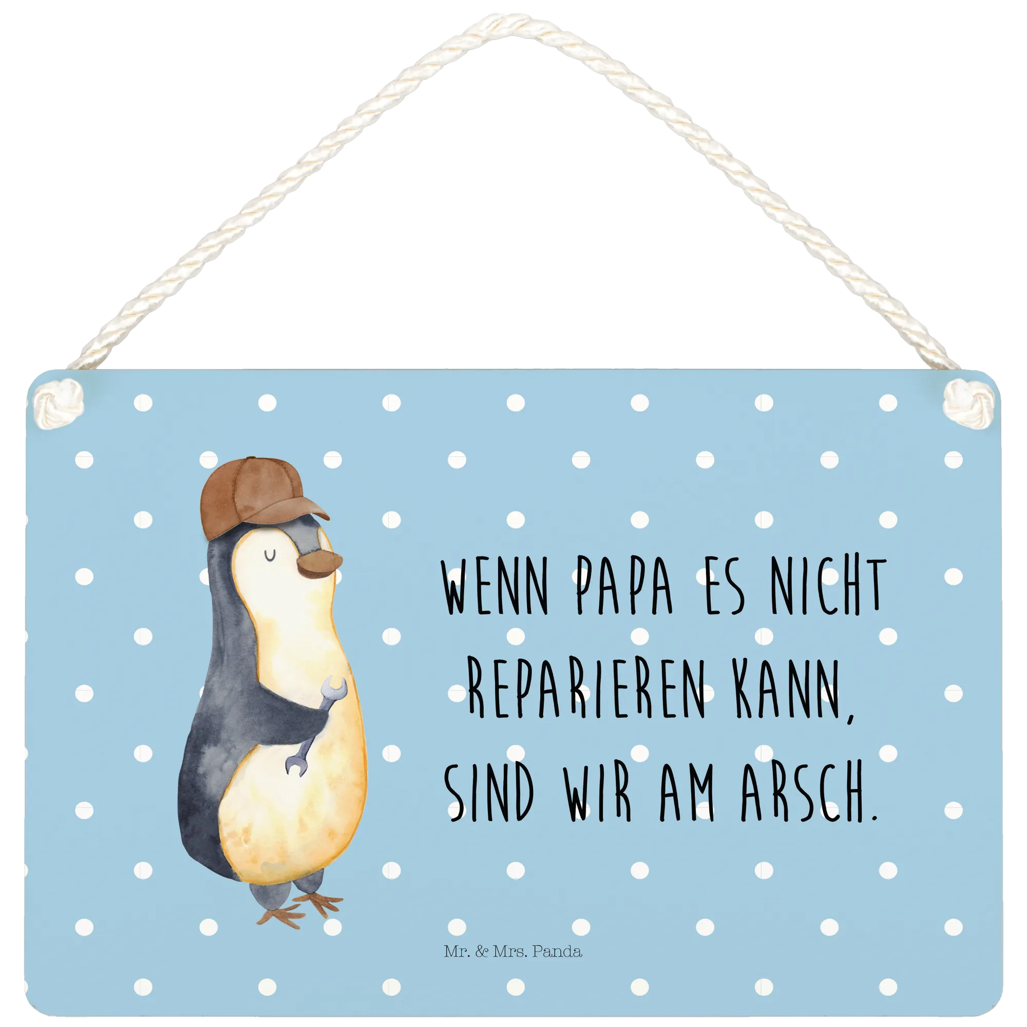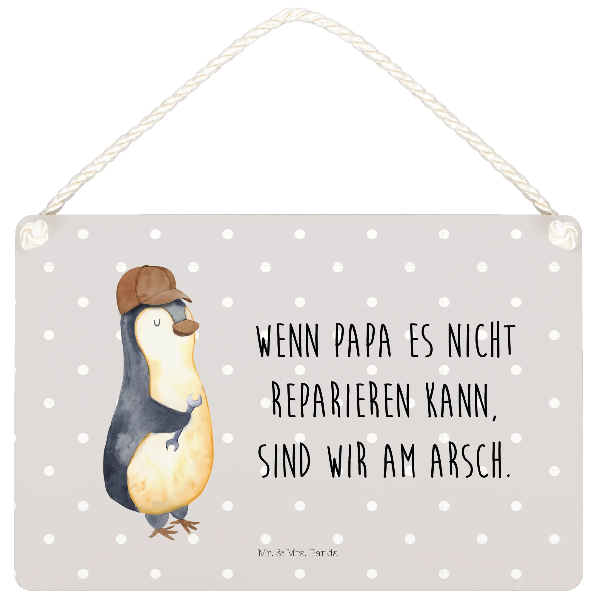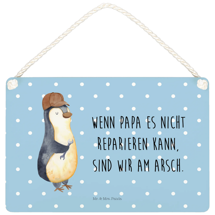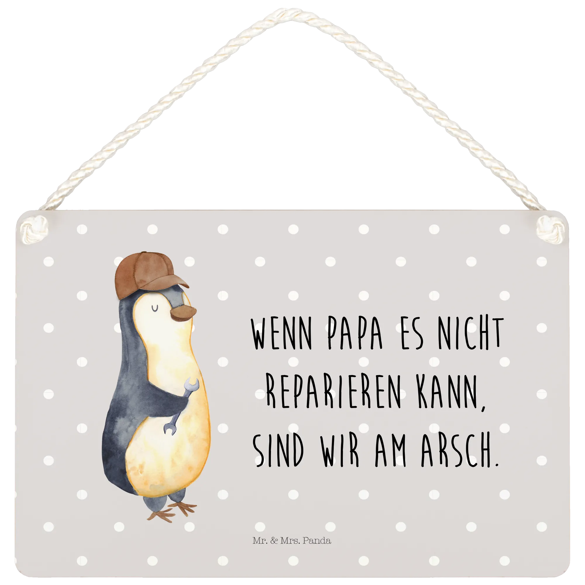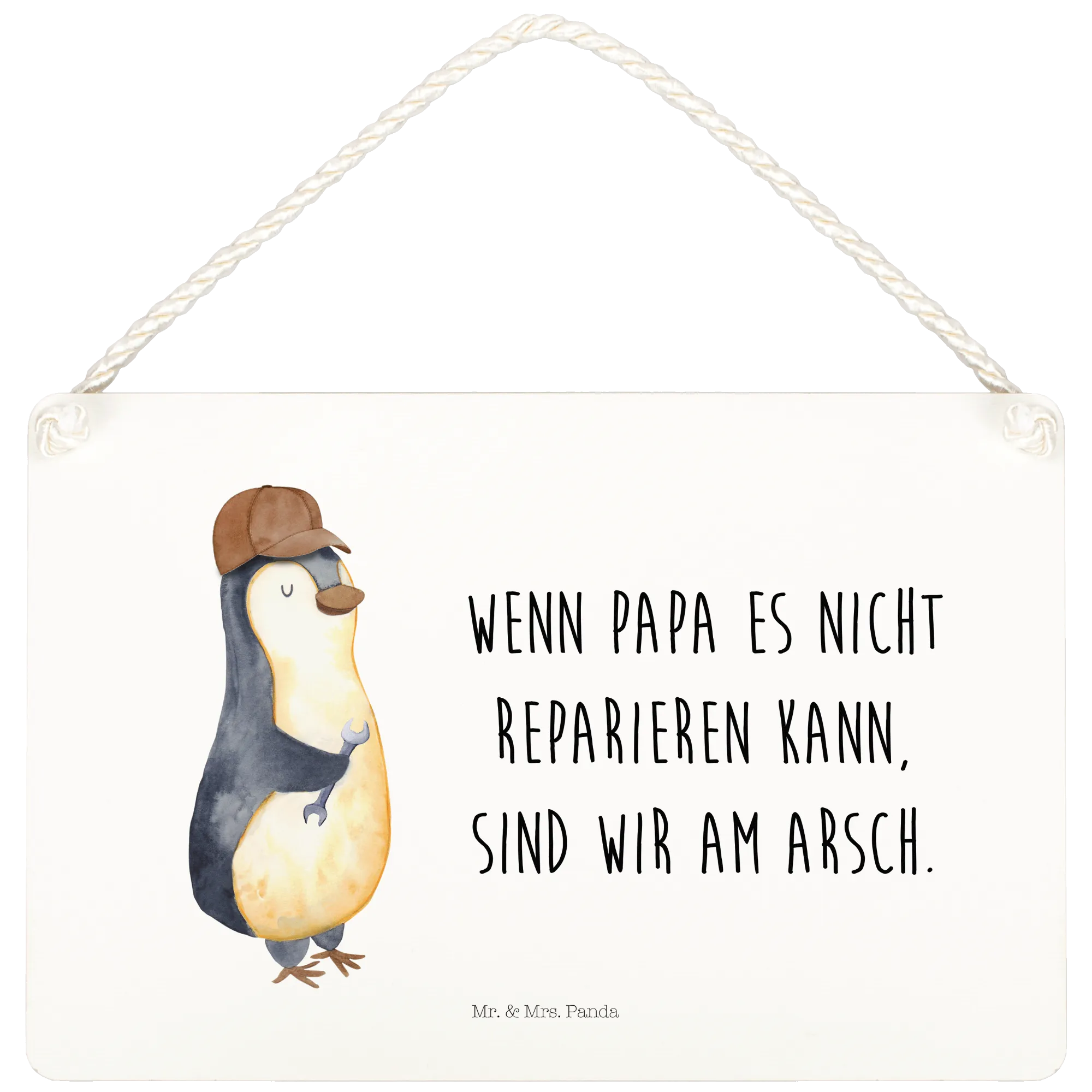 Das Deko Schild "Wenn Papa es nicht reparieren kann, sind wir am Arsch" von Mr. & Mrs. Panda ist das perfekte Geschenk für alle Väter! Ob zum Vatertag, Geburtstag oder als liebevolle Geste zwischendurch – dieses Schild bringt mit seinem humorvollen Spruch und dem niedlichen Pinguin-Motiv nicht nur ein Lächeln auf die Lippen, sondern zaubert auch eine tolle Atmosphäre in jedes Zuhause.