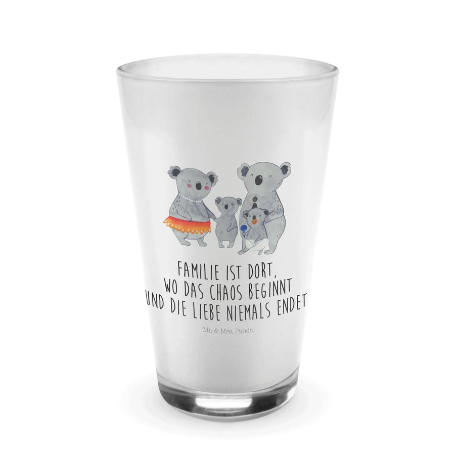 Das wunderschöne Cappuccino Glas mit dem liebevollen Koala Familien-Motiv von Mr. & Mrs. Panda ist das perfekte Geschenk für deine Liebsten! Egal ob zum Muttertag, Vatertag oder einfach nur so – mit diesem besonderen Trinkglas zauberst du jedem ein Lächeln ins Gesicht. Das Glas zeigt eine fröhliche Koala Familie, die mit einem herzlichen Spruch verziert ist: 'Familie ist dort, wo das Chaos beginnt und die Liebe niemals endet.'