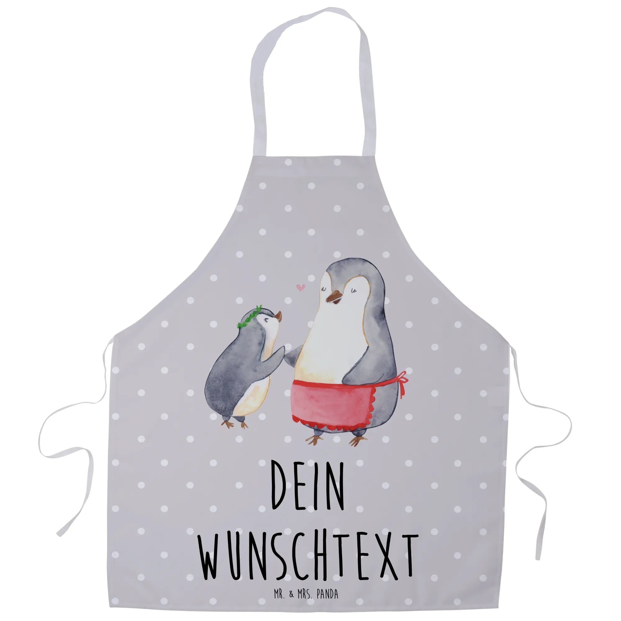 Die personalisierte Kochschürze mit dem süßen Motiv 'Pinguin mit Kind' von Mr. & Mrs. Panda ist das perfekte Geschenk für jede Mutter und ein absolutes Must-Have in jeder Küche!