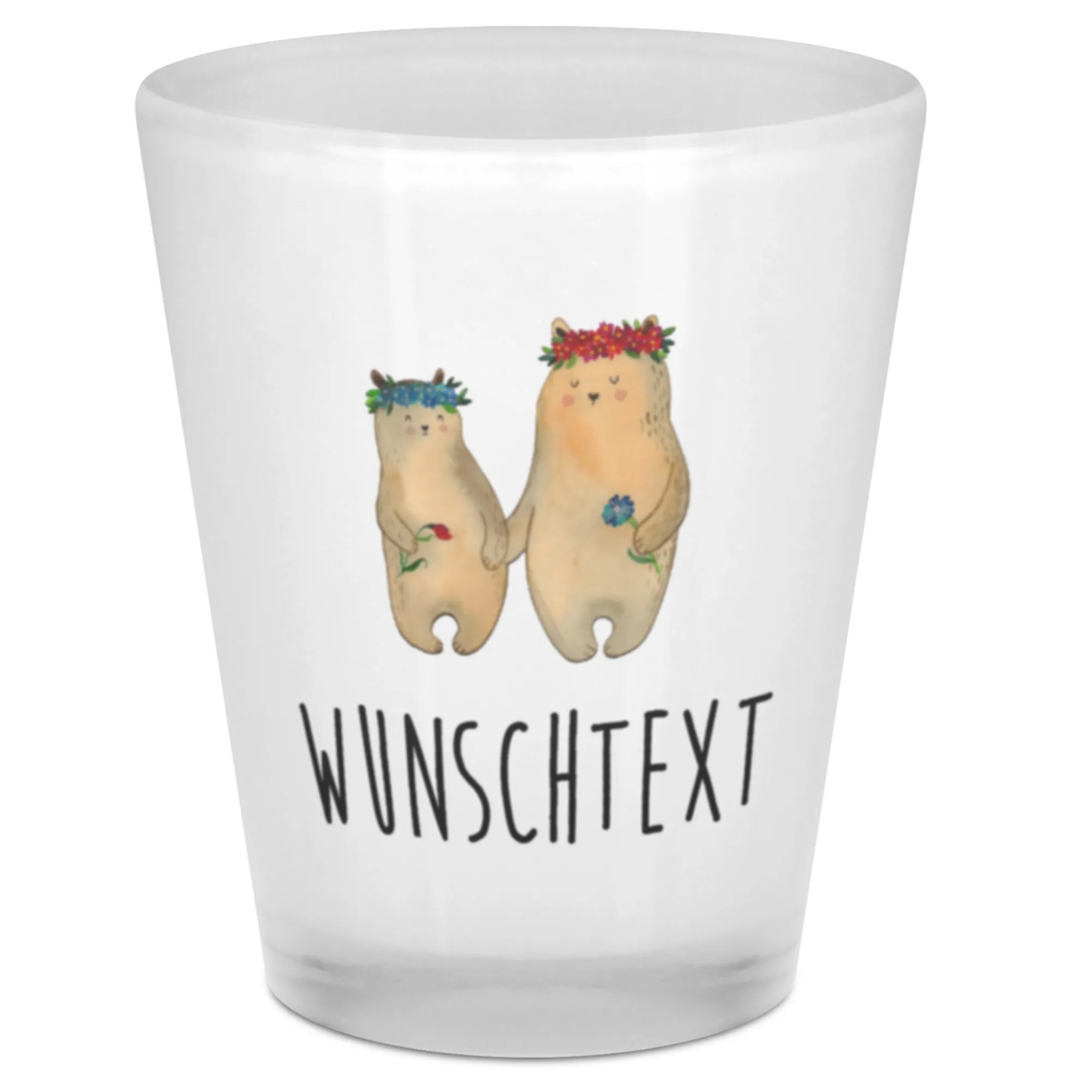 Personalisiertes Schnapsglas Bären mit Blumenkranz – Mr. & Mrs. Panda