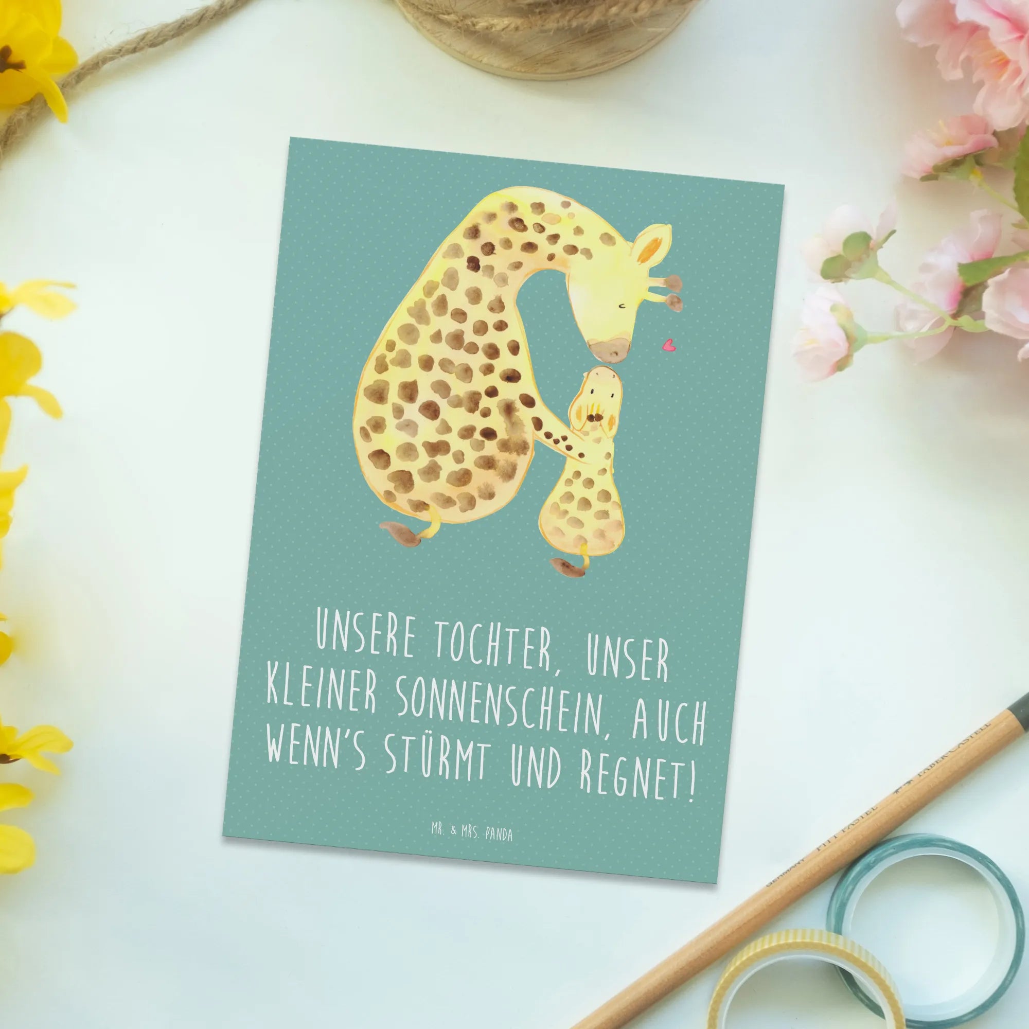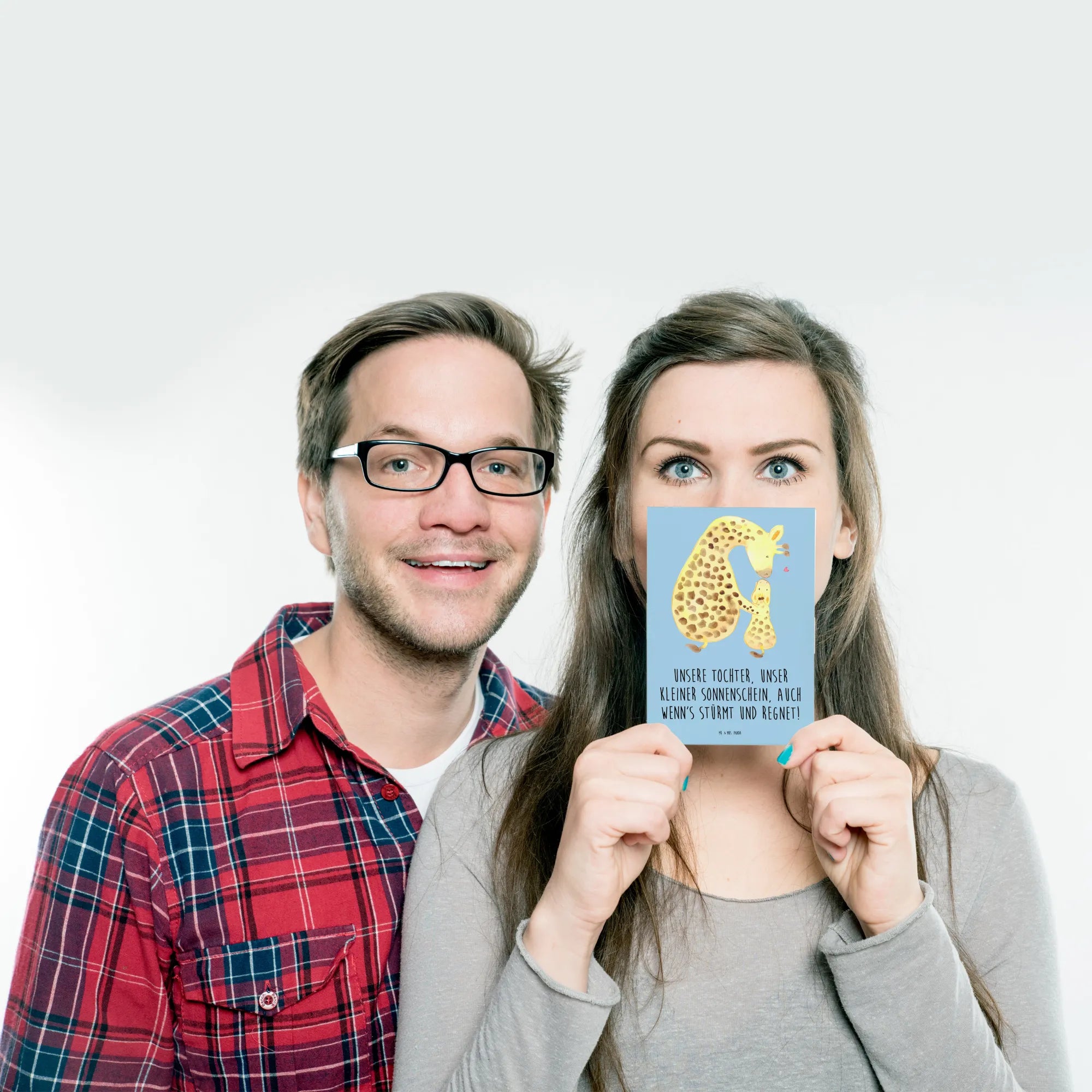 Unsere Tochter-Postkarte aus der Familie & Verwandte Kollektion von Mr. & Mrs. Panda ist eine liebevolle Botschaft auf kleinem Format. Mit dem herzerwärmenden Spruch „Unsere Tochter, unser kleiner Sonnenschein, auch wenn's stürmt und regnet!“ bringt sie Gefühle auf den Punkt und eignet sich perfekt als Geburtstagskarte, Grußkarte oder Einladungskarte.