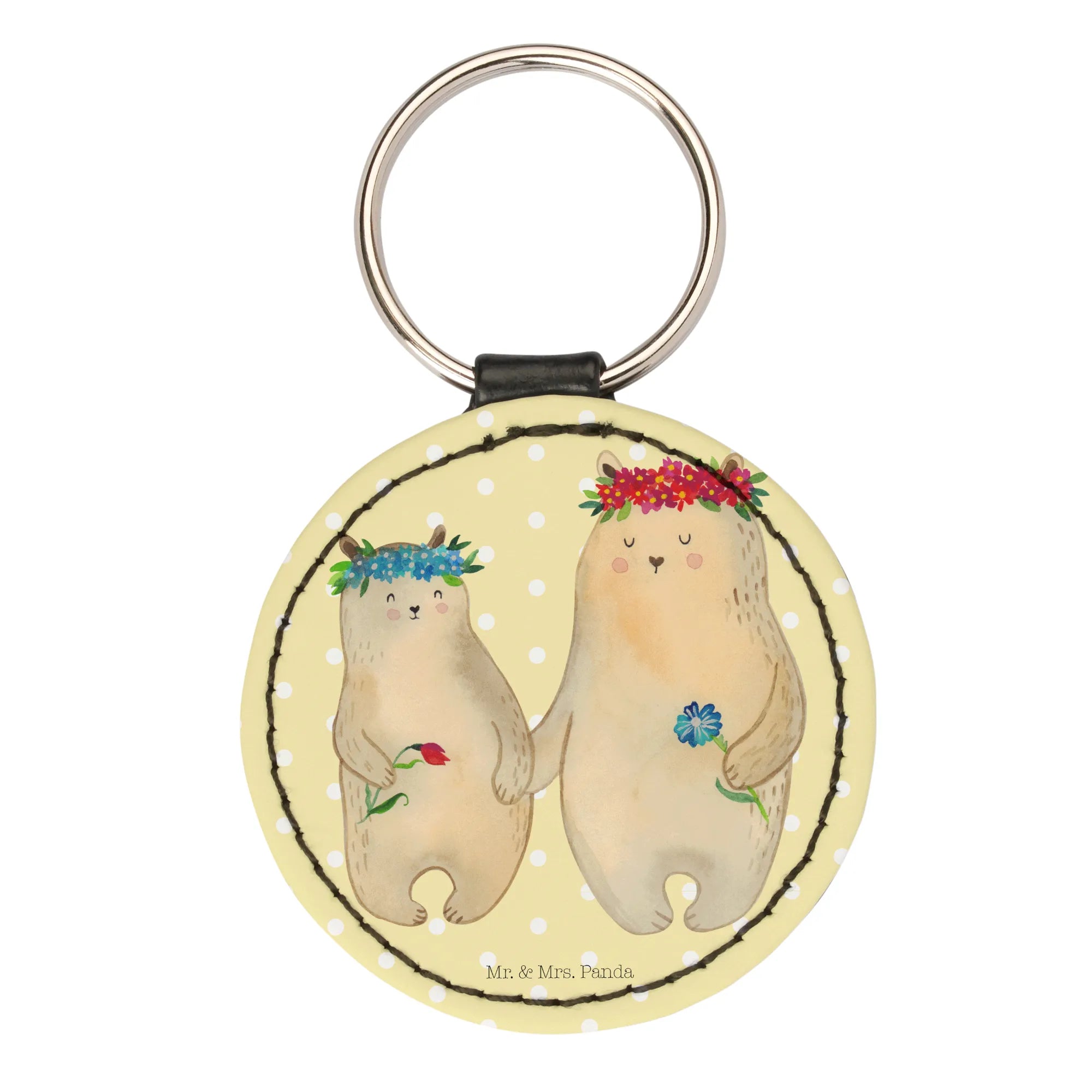 Rund Schlüsselanhänger Bären mit Blumenkranz - Gelb Pastell