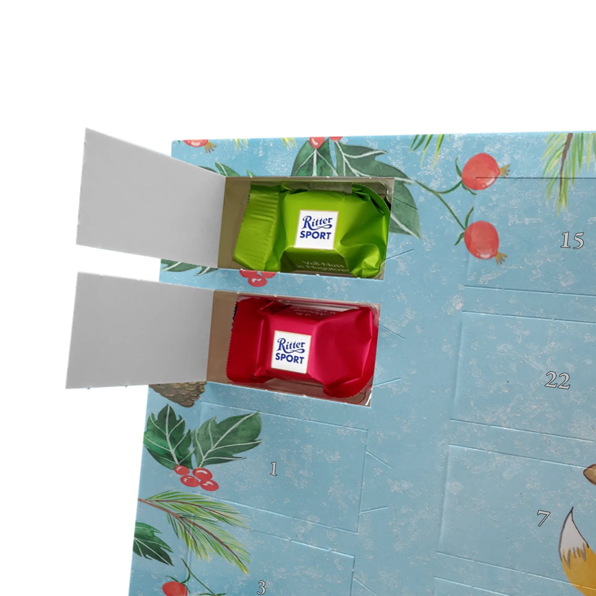 adventskalender pralinen Fuchs Mama - Classic - mit Spruch - Eisblau