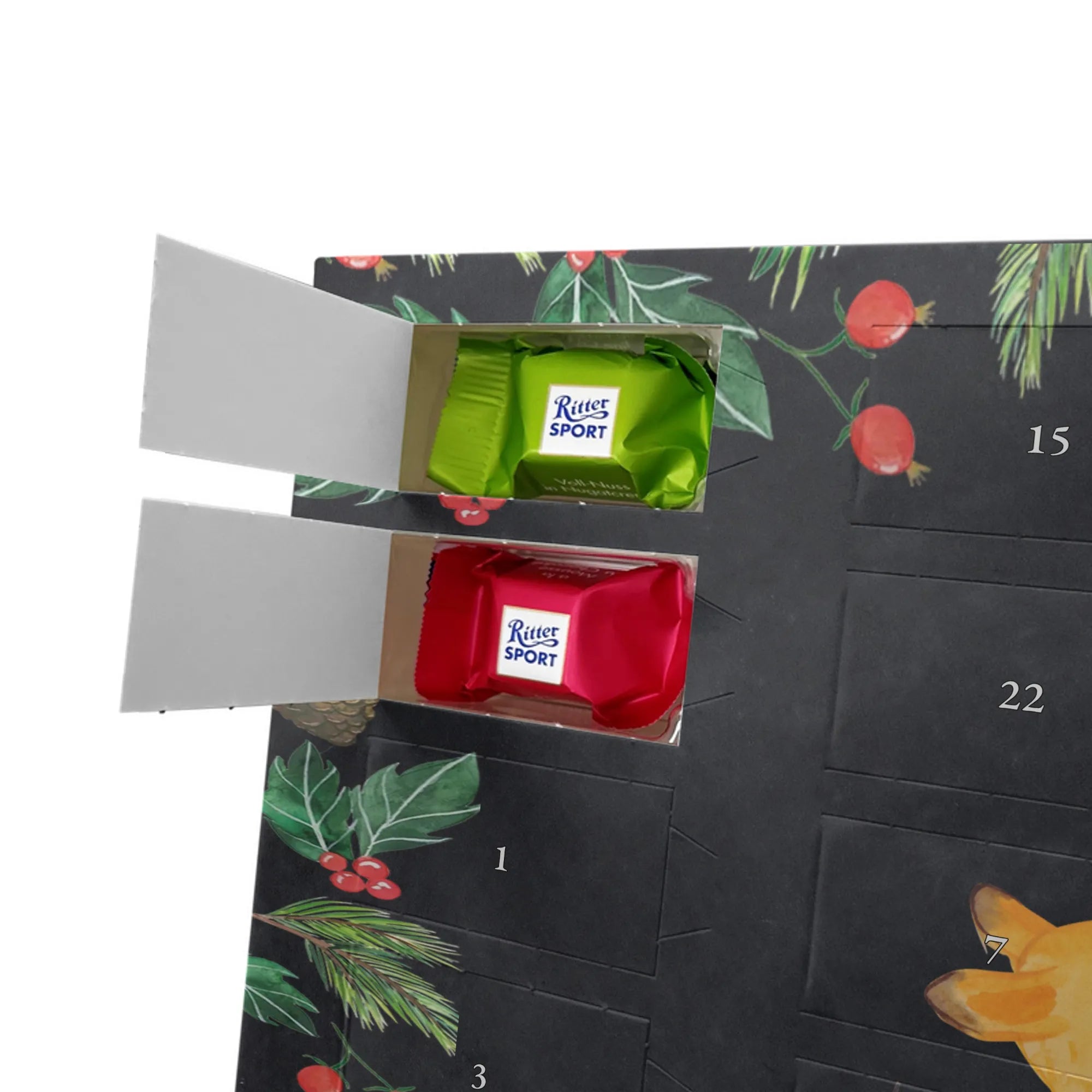 Schon unser Schoko-Adventskalender von Mr. & Mrs. Panda gesehen? Ein liebevoll gestalteter Kalender, bedruckt mit wunderschönen Motiven & Sprüchen, der deine Adventszeit versüßt. Der Kalender ist nicht personalisierbar, überzeugt aber durch brillante Druckqualität mit seidenmatter Oberflächenveredelung und bedruckte Seitenflächen für ein rundum schönes Erscheinungsbild. Maße: 325 mm x 225 mm x 27 mm. Du kannst ihn aufhängen oder aufstellen – ganz wie es dir gefällt. Gefüllt mit Ritter Sport Schokowürfeln in köstlichen Sorten: Mousse au Chocolat, Schoko Crisp, Voll-Nuss in Nougatcreme, Karamell Duo, Joghurt und Erdbeer-Joghurt. Bitte beachten: Es handelt sich um einen Kalender gefüllt mit Ritter Sport Schokolade, nicht um einen Kalender der Marke Ritter Sport. Ob als Geschenk oder für dich selbst – dieser Schoko-Adventskalender bringt täglich kleine Glücksmomente und süße Überraschungen.