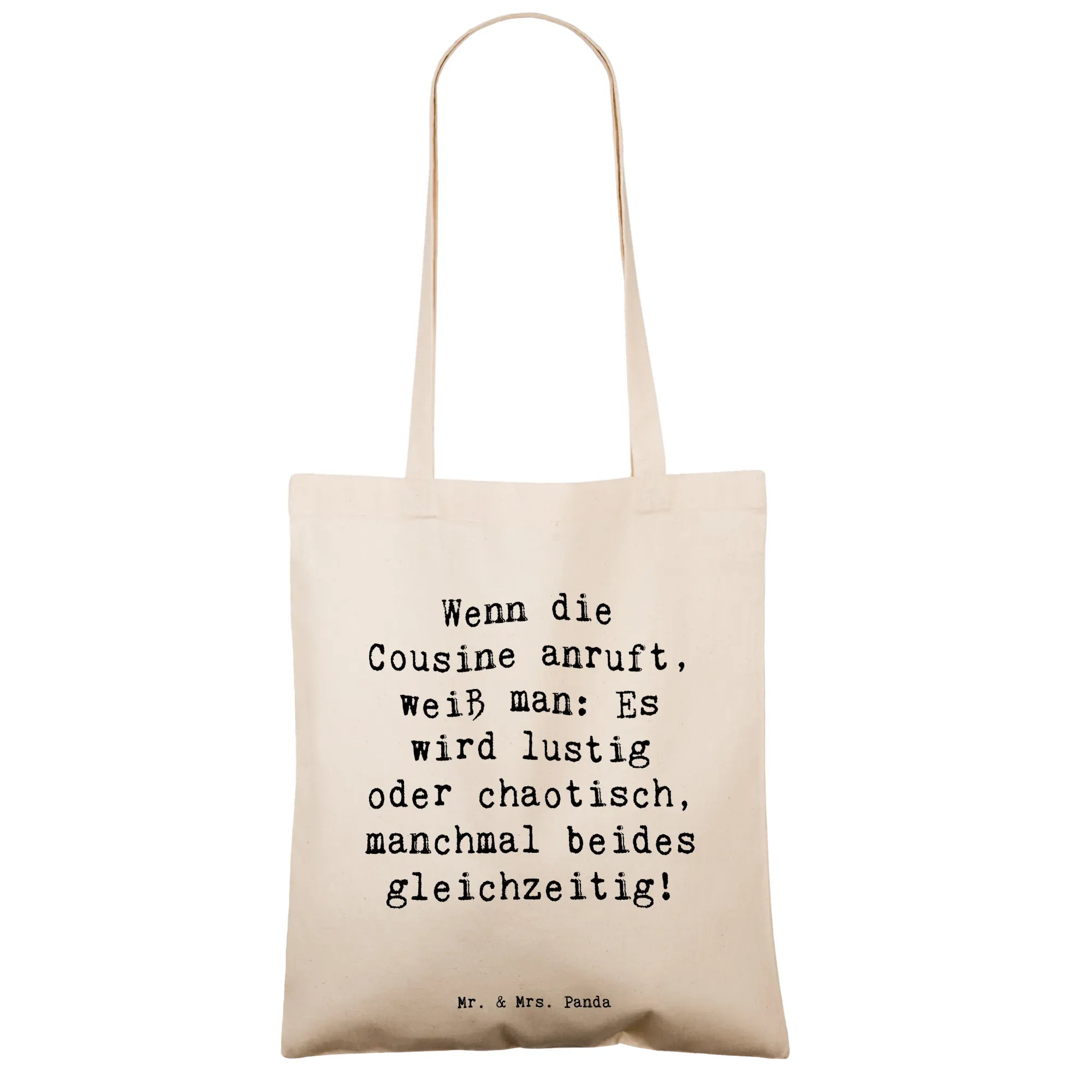 Mit der Tragetasche von Mr. & Mrs. Panda bist du immer gut ausgestattet! Ihre Maße von 420 mm x 380 mm bieten reichlich Platz und die hochwertige Verarbeitung aus 100% Baumwolle (140g/m²) sorgt für Stabilität. Durch umsäumte und eingeschlagene Innennähte bleibt die Form der Tasche erhalten. Die komfortablen Tragegriffe (70 cm) machen das Tragen leicht und angenehm, egal ob als Shopper, Umhängetasche oder Strandtasche. Die süßen Motive und Sprüche bringen Freude in deinen Alltag und machen die Tasche zu deinem ständigen Begleiter. Pflege die Tasche mit einer lauwarmen Handwäsche, um ihre Schönheit und Funktionalität zu wahren. Erlebe die perfekte Kombination aus Stil und Praktikabilität!