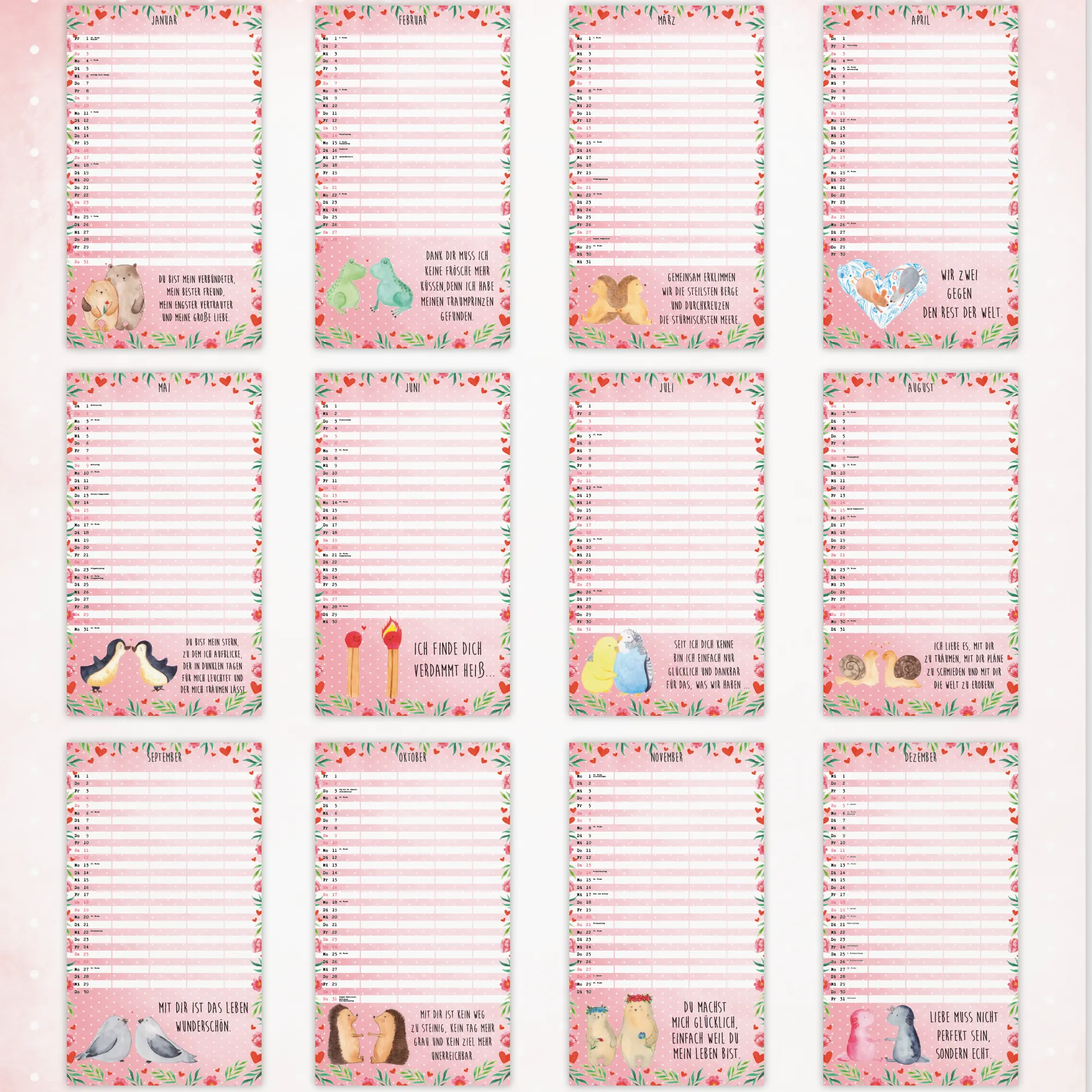 Liebevolle Details: Jeden Monat begleiten dich lebensfrohe, motivierende Sprüche, die kleine Glücksmomente schenken. Die Motive aus der Liebe Kollektion wirken zärtlich und verbindend — ideal als Liebesgeschenk zum Jahrestag, zur Verlobung, zum Hochzeitstag oder zum Valentinstag.