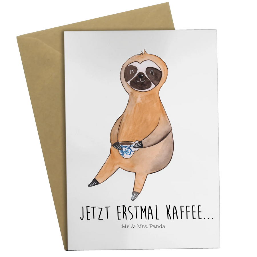 Grußkarte Faultier Kaffee - mit Spruch - Weiß