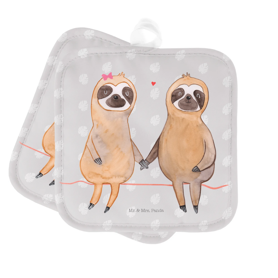 2er Set Topflappen Faultier Pärchen - ohne Spruch - Grau Pastell