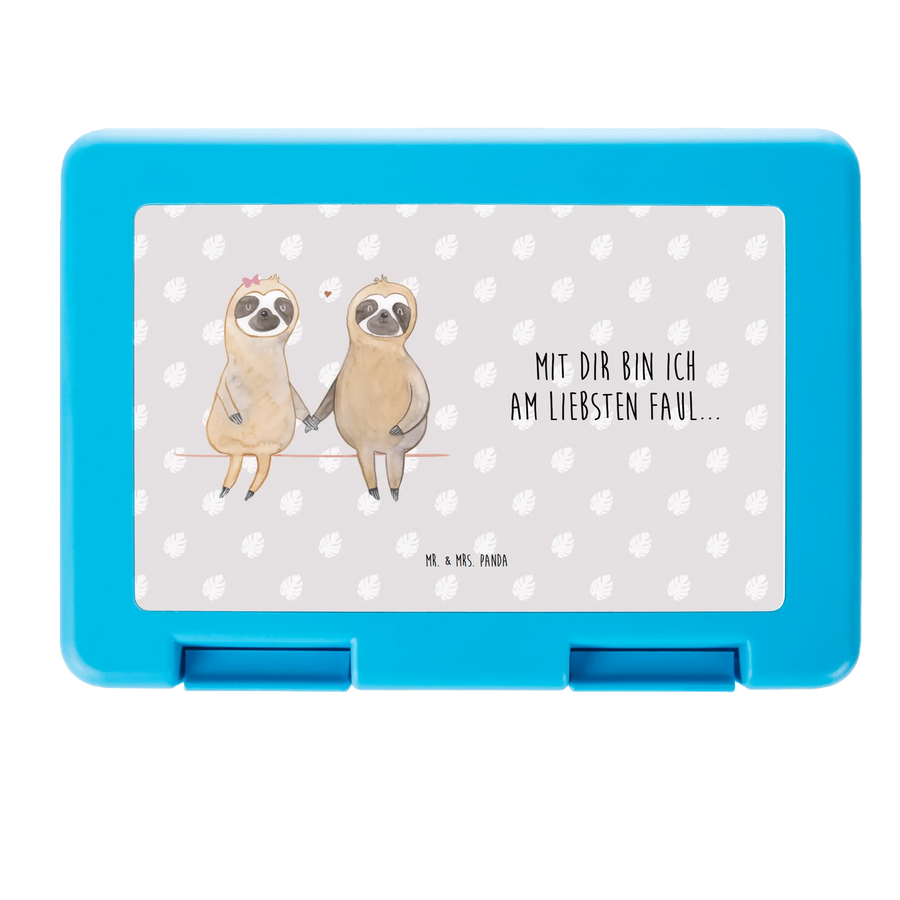 Entdecke die zauberhafte Brotdose mit dem süßen Faultier Pärchen von Mr. & Mrs. Panda! Mit einem handgezeichneten Aquarell-Gemälde eines Faultierpaares, das sich liebevoll an den Händen hält, bringt diese Brotdose nicht nur praktische Funktionalität in deinen Alltag, sondern auch eine ordentliche Portion Romantik und Entschleunigung.