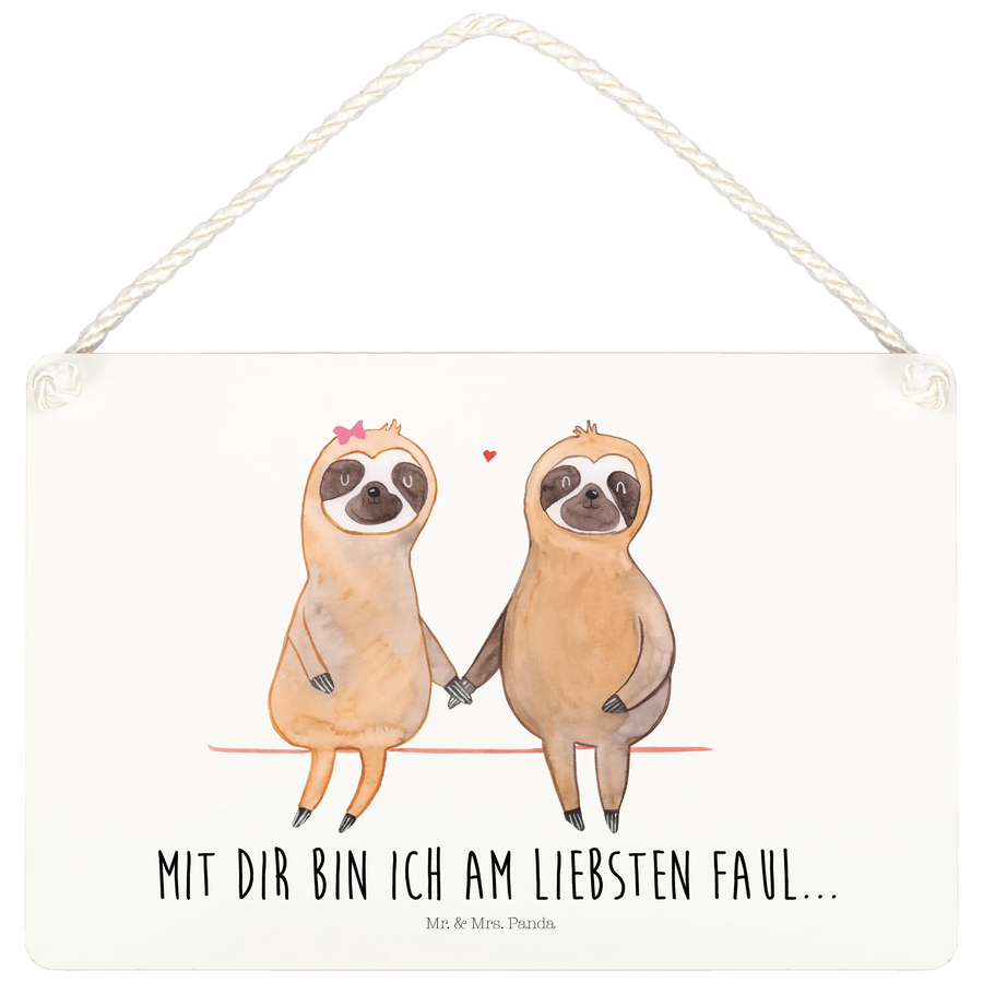 Das Deko Schild "Mit dir bin ich am Liebsten faul..." aus der Faultier-Kollektion von Mr. & Mrs. Panda ist das perfekte Geschenk für alle Faultierliebhaber und verliebte Paare. 🌟 Mit seinem charmanten Faultier-Pärchen-Motiv zieht es alle Blicke auf sich und bringt eine niedliche Atmosphäre in dein Zuhause.