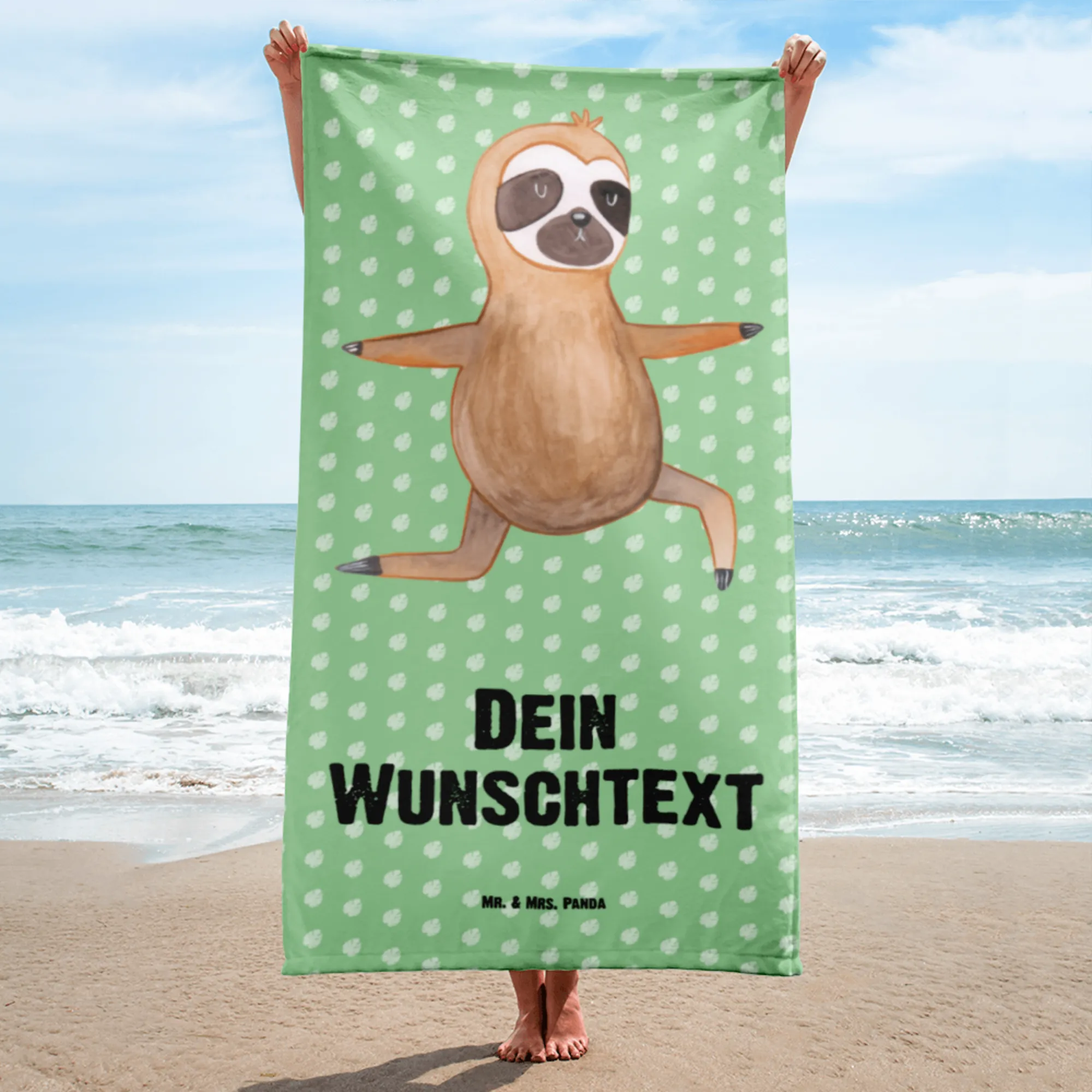XXL Badehandtuch mit Namen Faultier Yoga