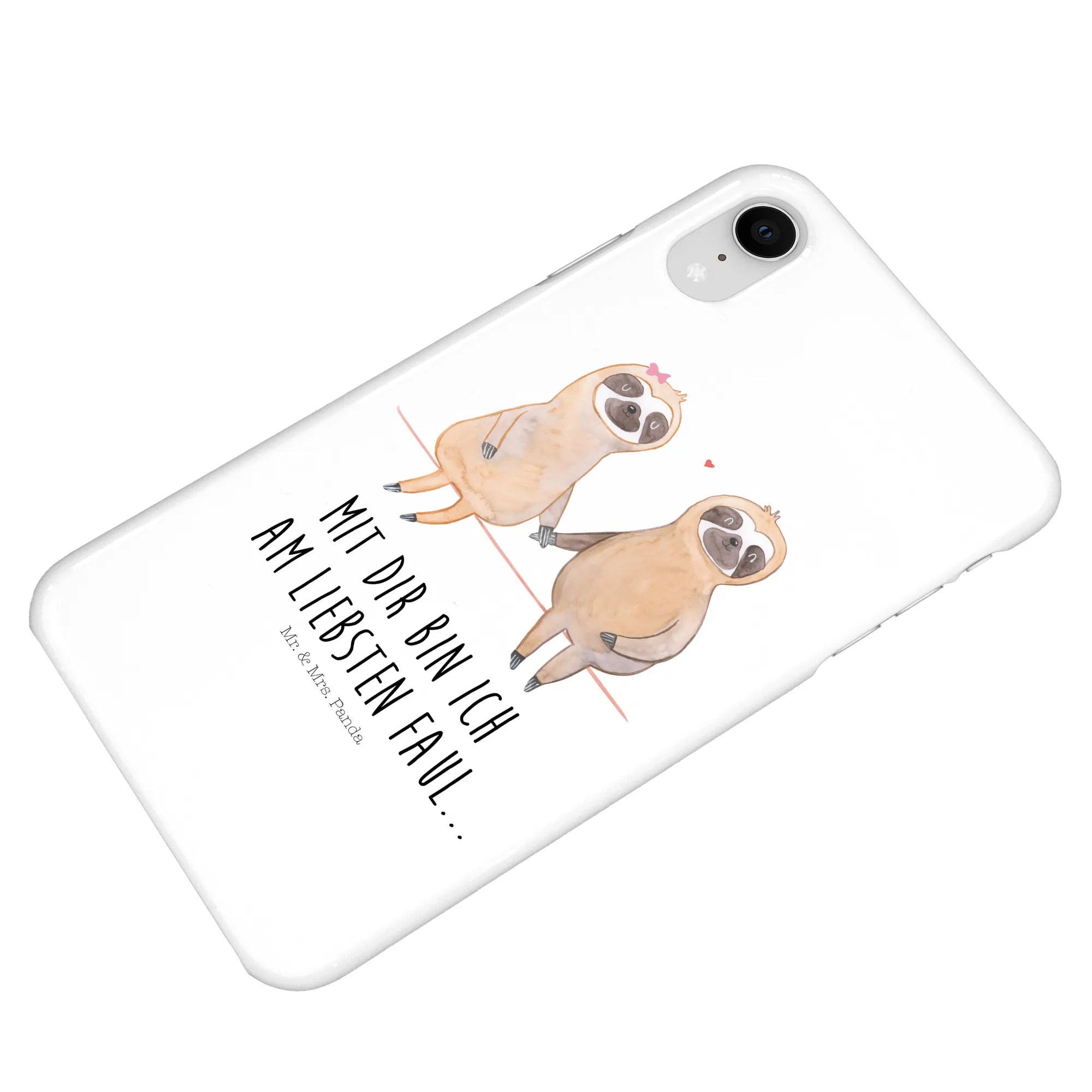 Die iPhone XR Handyhülle mit dem süßen Faultierpärchen ist das perfekte Geschenk für alle Faultierliebhaber und Paare, die das Leben in langsamen Zügen genießen. Dieses liebevoll handgezeichnete Aquarell von Mr. & Mrs. Panda zeigt ein Pärchen von Faultieren, die einander an den Händen halten und die Liebe zueinander feiern.