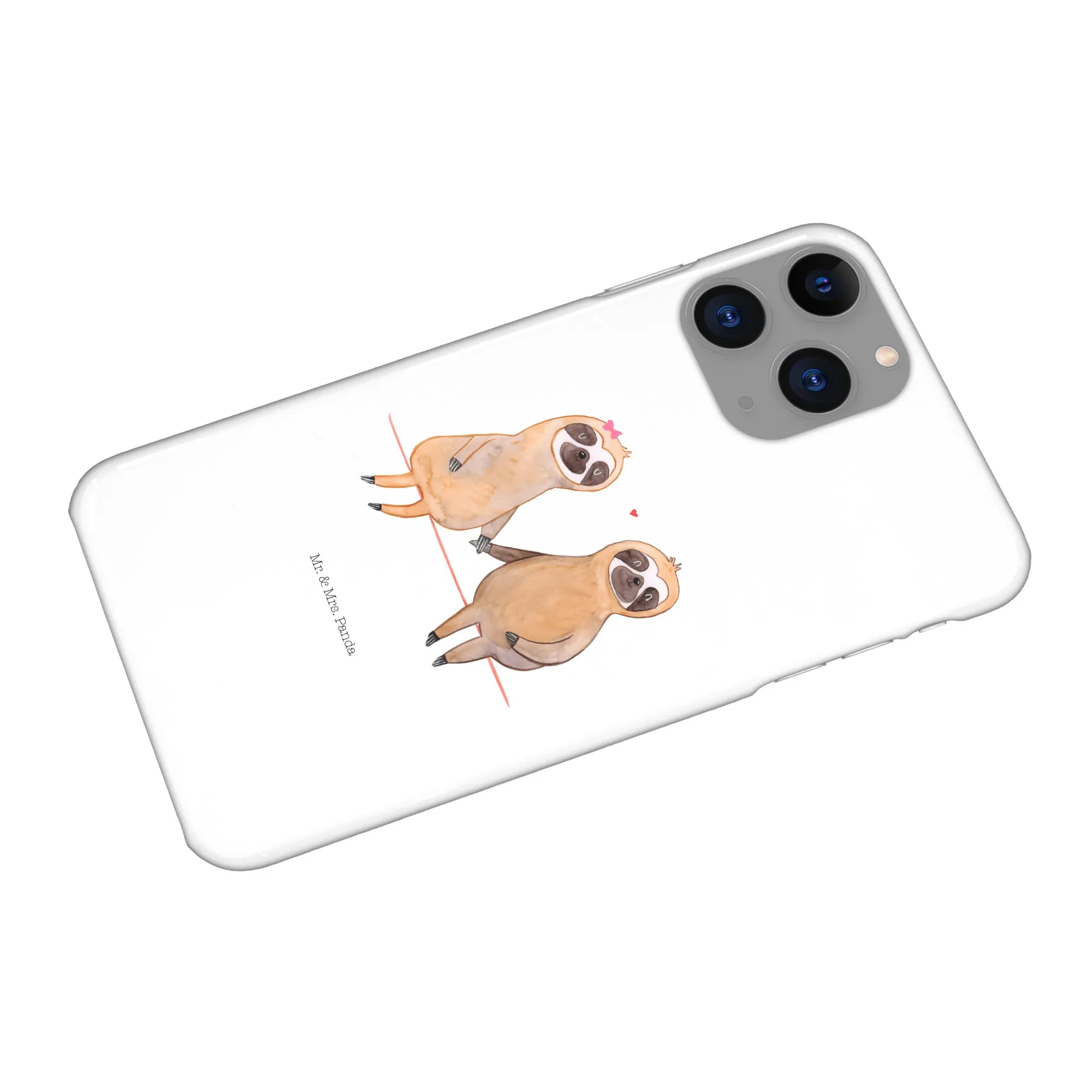 Liebst du Faultiere und Zweisamkeit? Unsere iPhone 11 Pro Handyhülle mit dem Faultier Pärchen aus der Faultier - Kollektion von Mr. & Mrs. Panda vereint süßes Aquarell-Design mit praktischem Schutz für Dein Telefon. Das handgezeichnete Motiv zeigt zwei verliebte Faultiere, die sich an den Händen halten – ein wunderschönes Symbol für Nähe, Ruhe und Zusammenhalt.