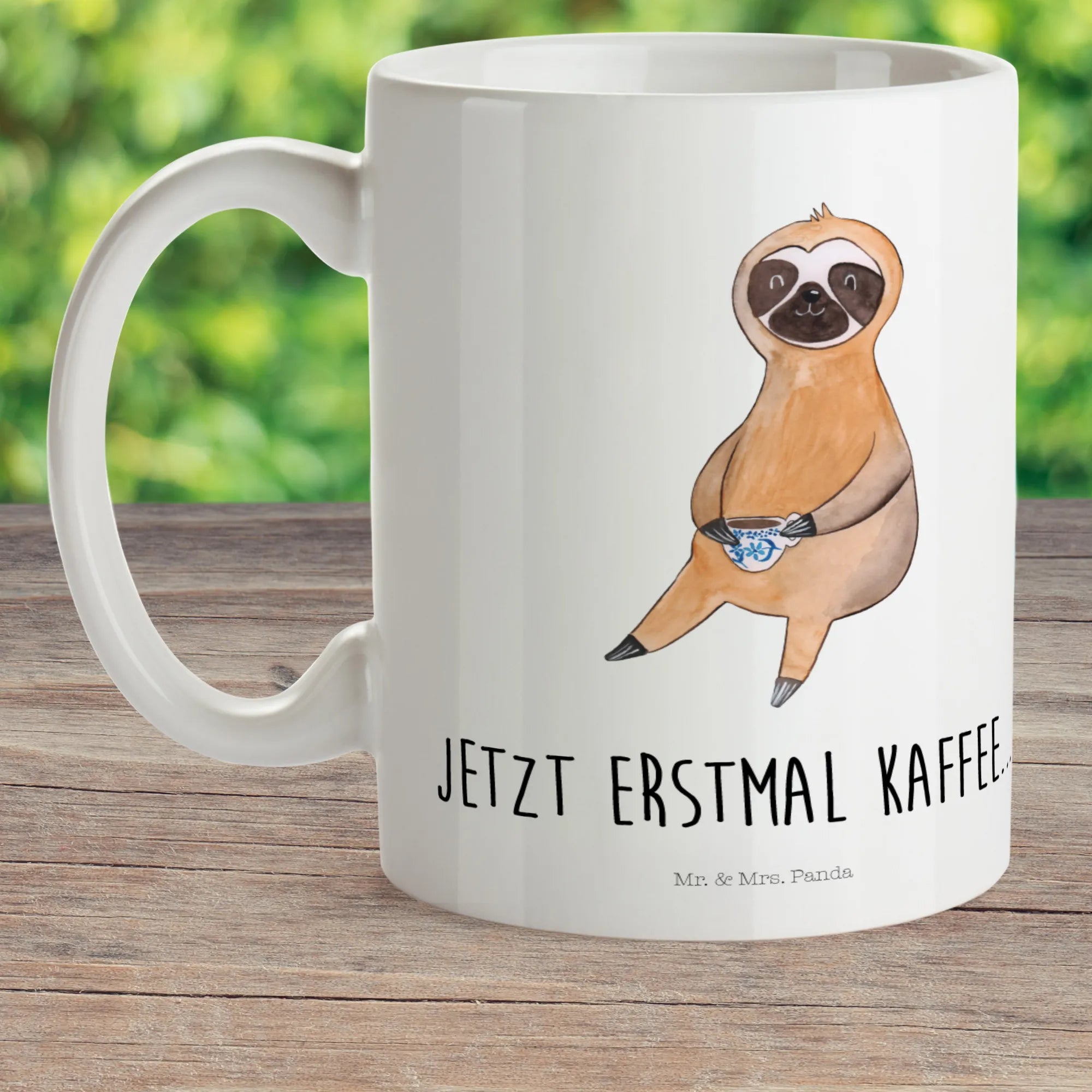 Der witzige Slogan "Jetzt erstmal Kaffee..." macht die Tasse zu einem tollen Geschenk für Frühaufsteher, Schulkinder und natürlich für alle, die Faultiere lieben. Perfekt für Geburtstagsgeschenke, Einschulungsfeiern oder als kleine Aufmerksamkeit zwischendurch.
