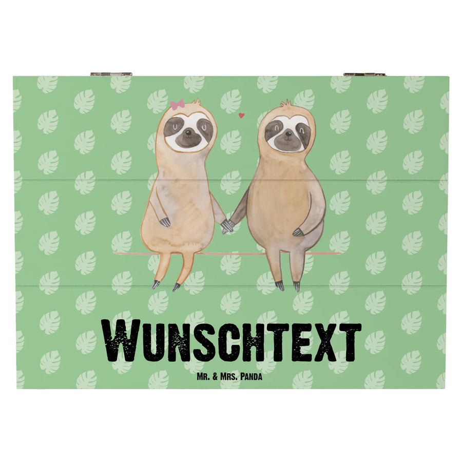 Die personalisierte Holzkiste mit dem süßen Faultier Pärchen von Mr. & Mrs. Panda ist das perfekte Geschenk für alle, die ihrer Liebe einen besonderen Platz geben möchten. Diese wunderschöne Kiste, bedruckt mit einem handgemalten Aquarell-Gemälde der beiden Faultiere, wird durch ihren Slogan 'Mit dir bin ich am Liebsten faul...' zu einem unverwechselbaren Dekorationsstück in jedem Zuhause.