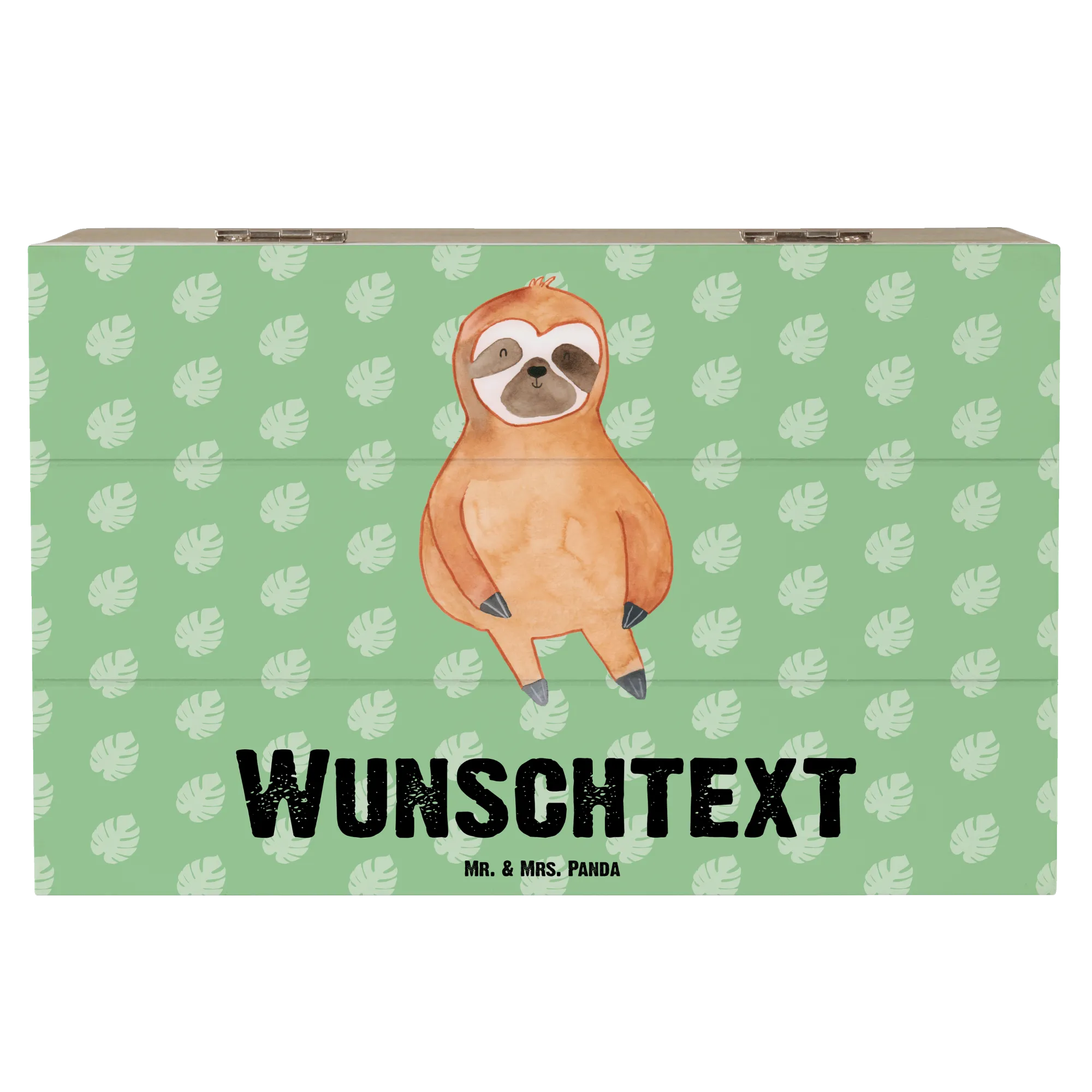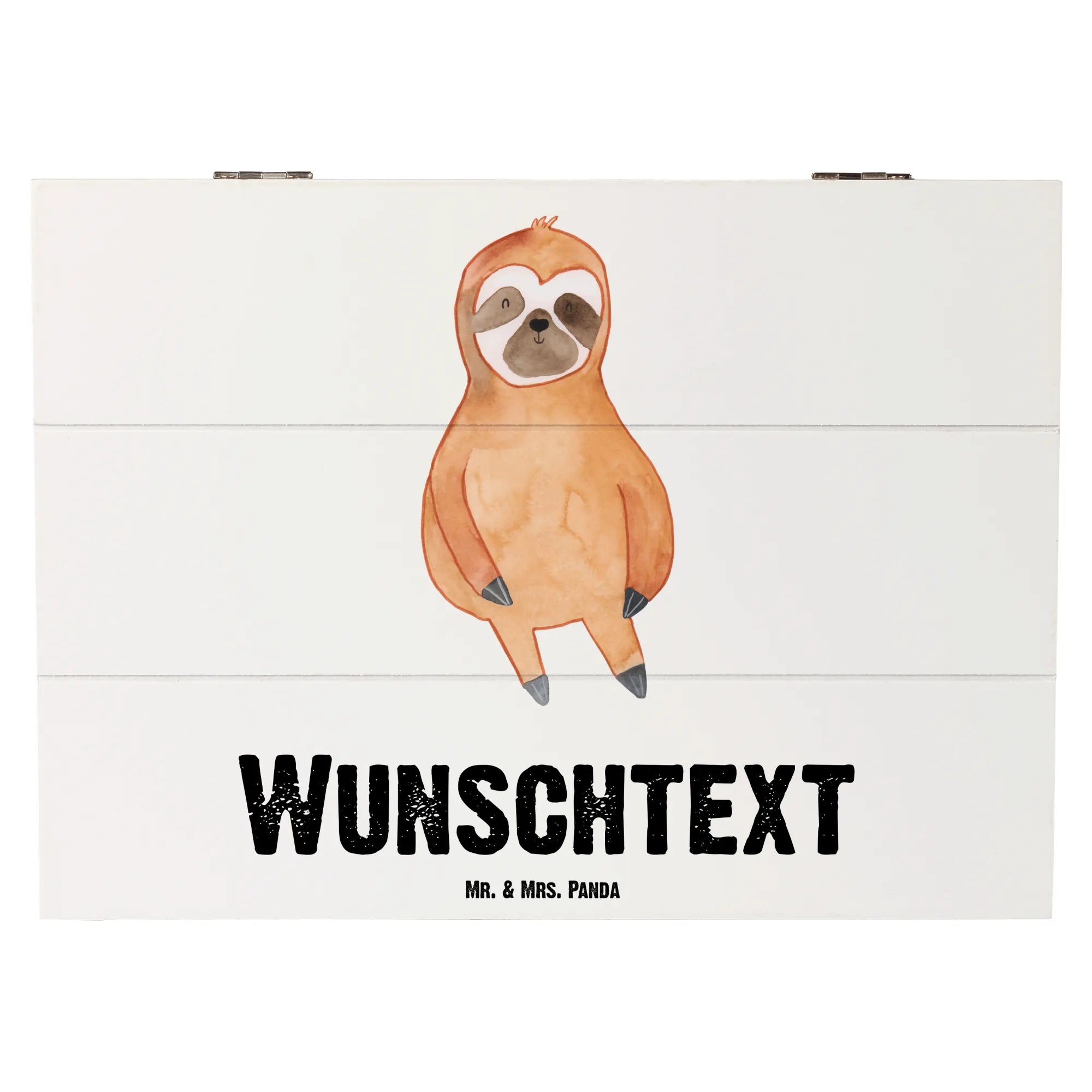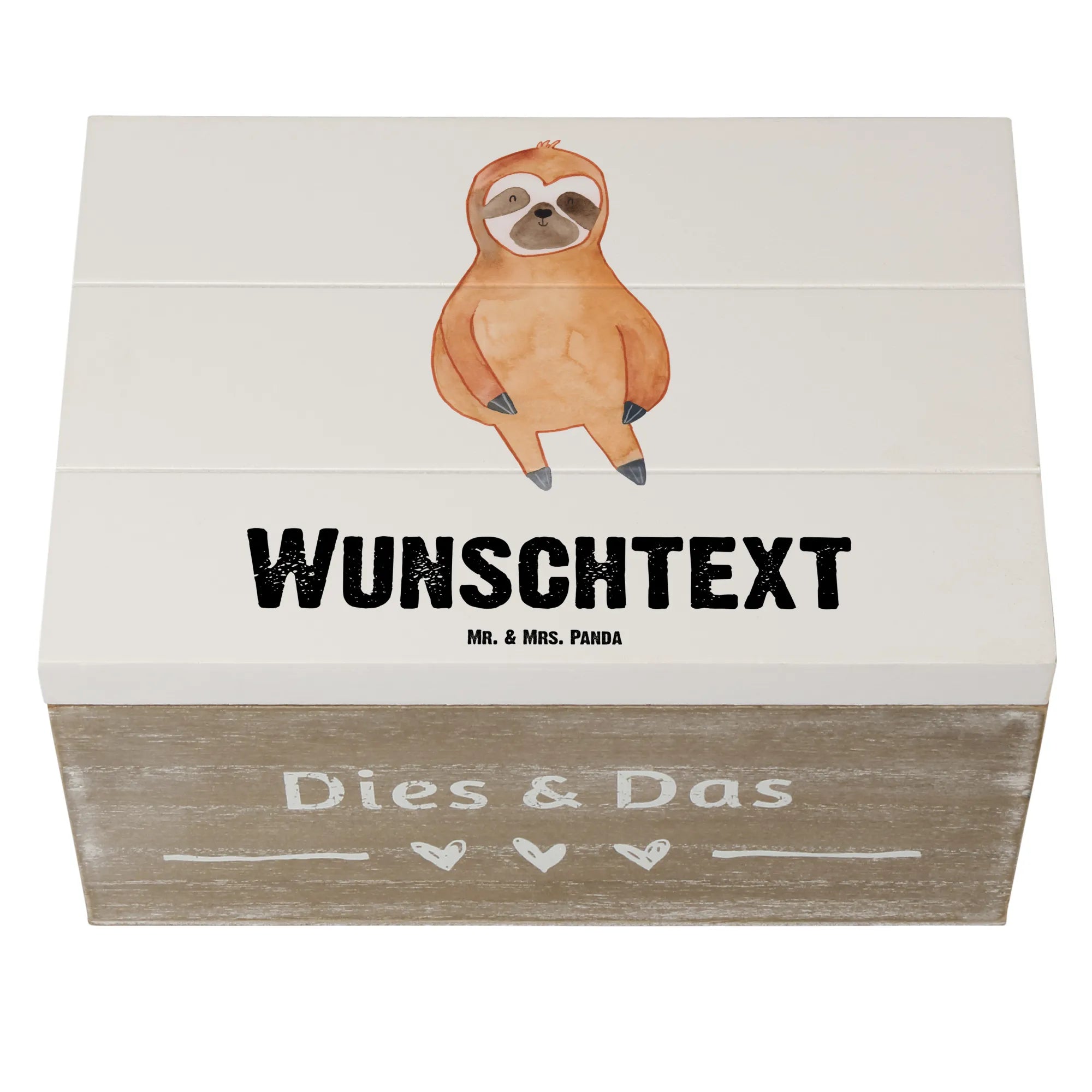 Entdecke die wunderschöne personalisierte Holzkiste mit dem Faultier Zufrieden Motiv von Mr. & Mrs. Panda! Diese einzigartige Kiste ist nicht nur ein ideales Zuhause für all deine kleinen Schätze, sondern auch ein perfektes Geschenk für deine Liebsten.