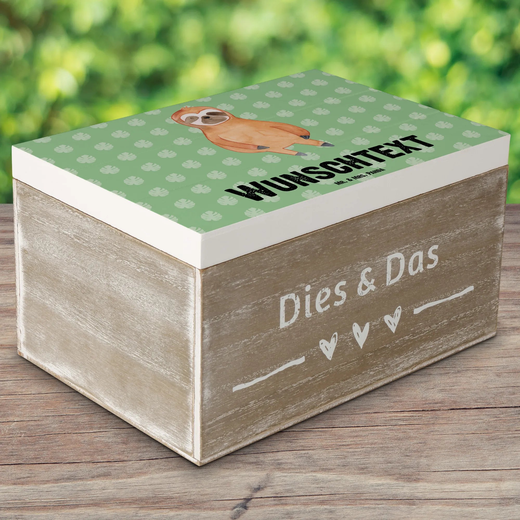 Verschenke die Freude des Lebens mit unserer personalisierten Holzkiste "Faultier Zufrieden" von Mr. & Mrs. Panda! Diese wunderschöne Kiste ist nicht nur ein praktischer Aufbewahrungsort für all deine wertvollen Schätze, sondern auch ein einzigartiges Geschenk, das von Herzen kommt.