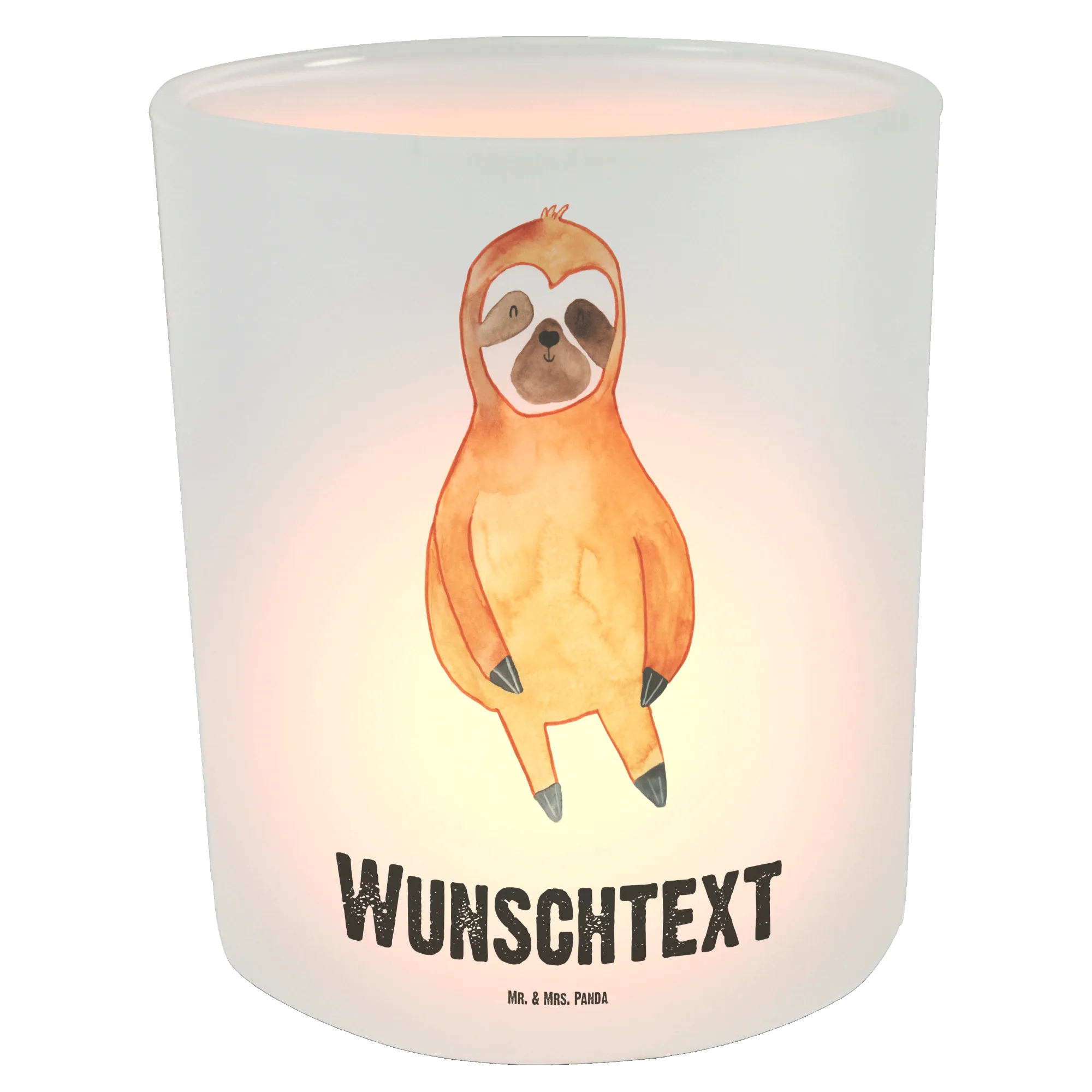Personalisiertes Windlicht Faultier Zufrieden – Mr. & Mrs. Panda