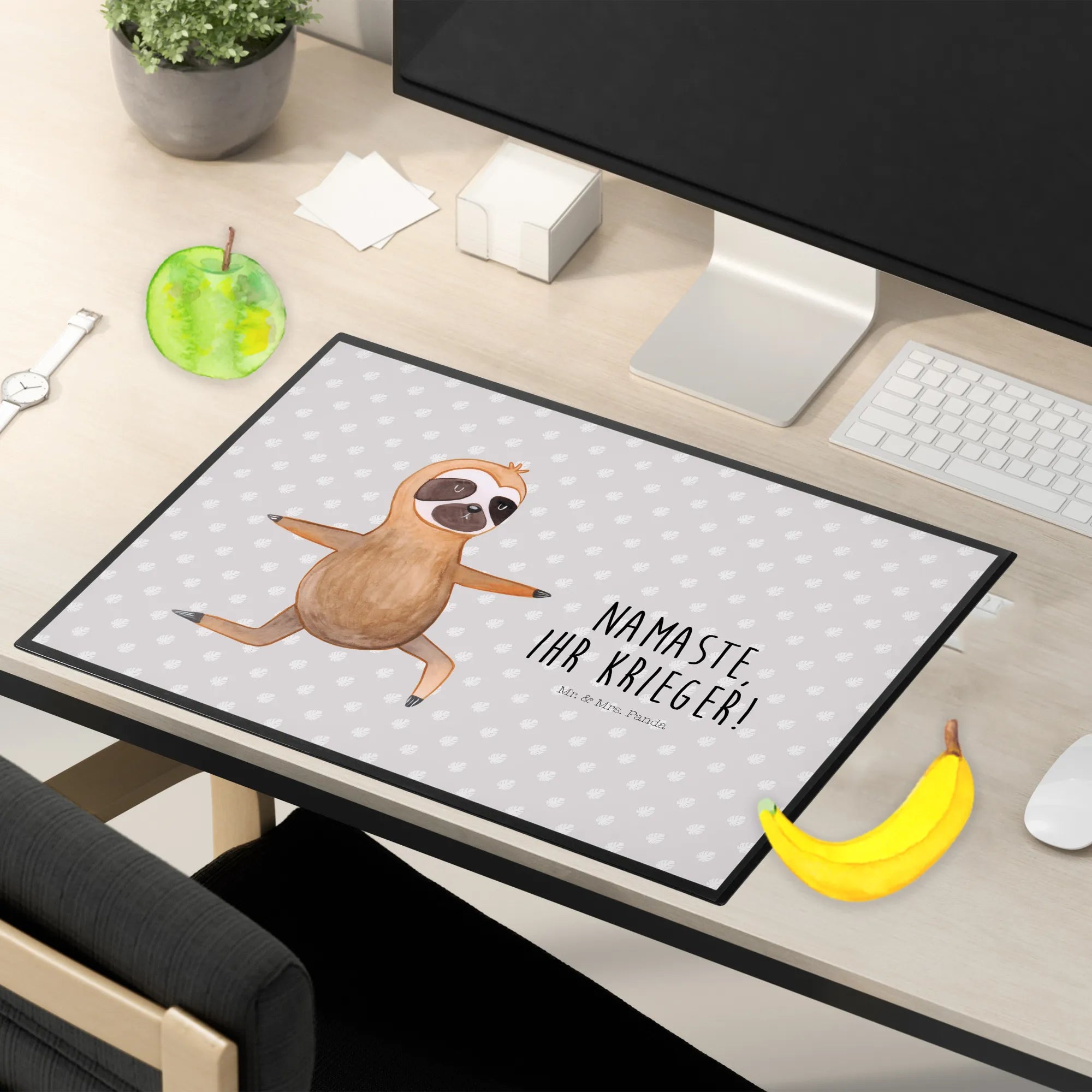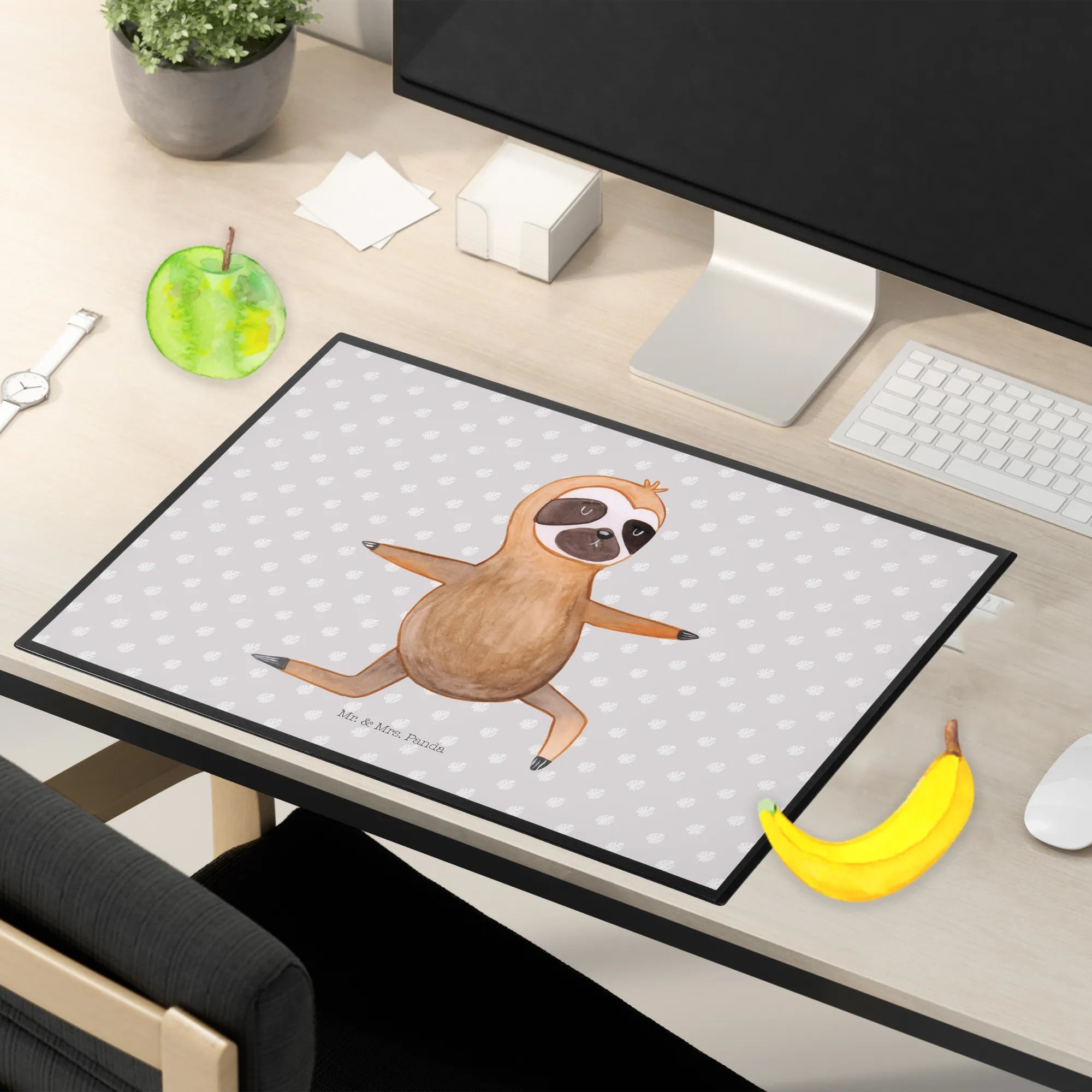 malunterlage Faultier Yoga - mit Spruch - Grau Pastell