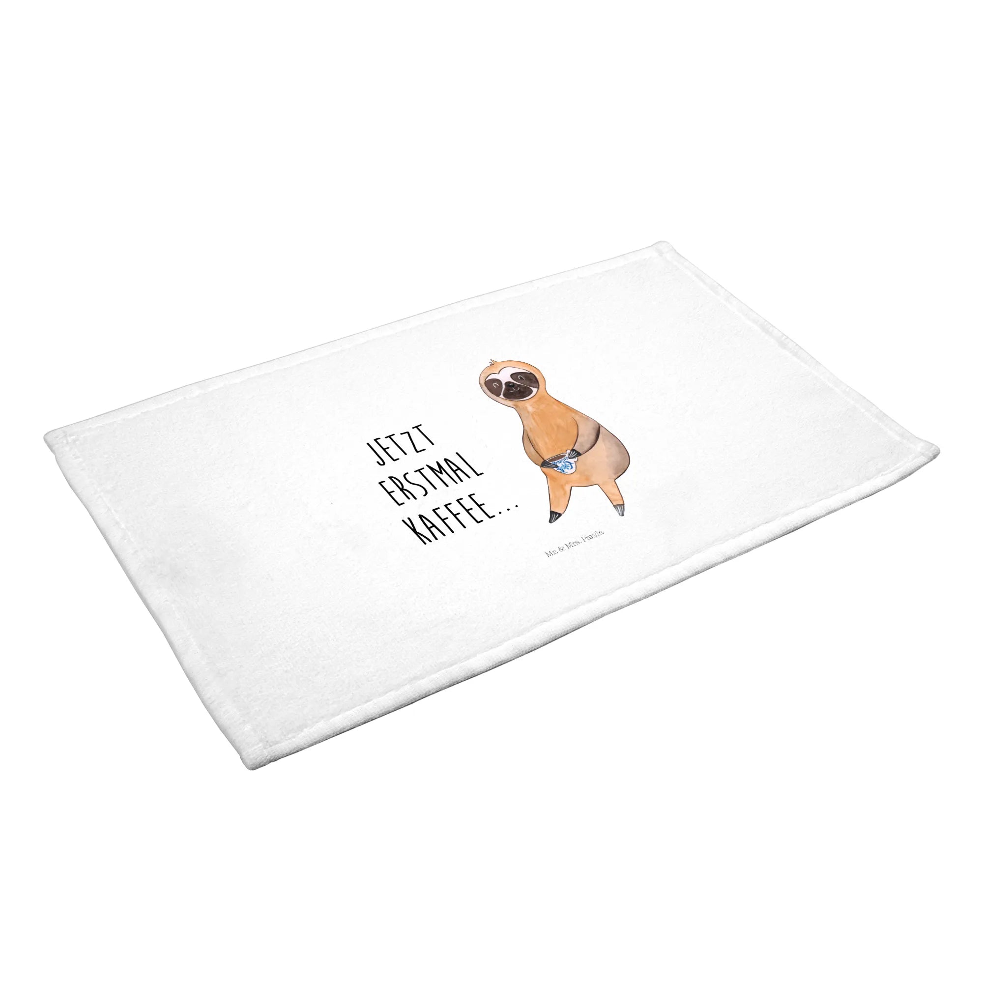 Handtuch Faultier Kaffee - mit Spruch - Weiß