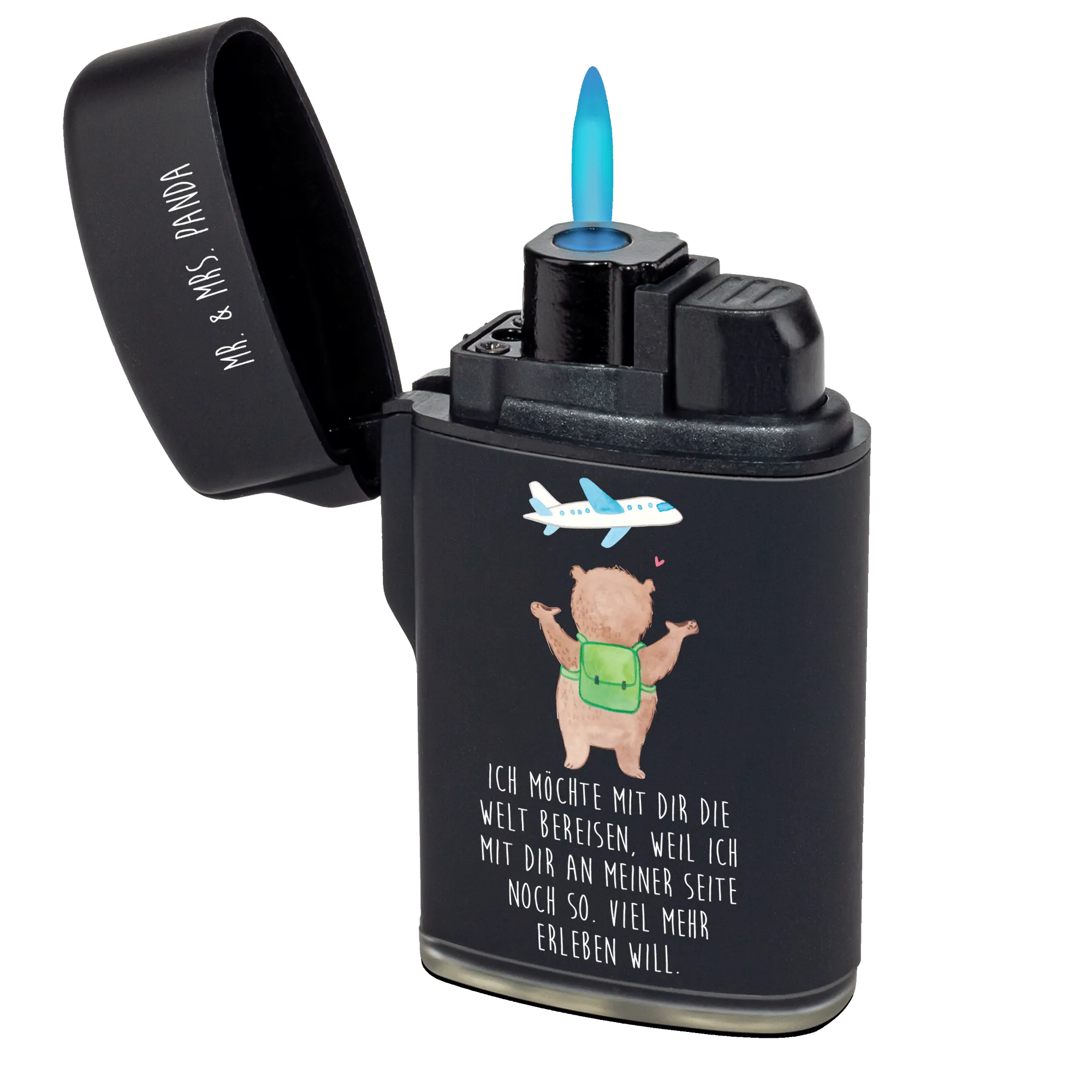 Das Bär Flugzeug-Motiv ist liebevoll in sanften, aquarellartigen Farben gestaltet und wird von einem kleinen roten Herzen begleitet, das die Verbindung zwischen Dir und Deinem Partner symbolisiert. Dieses entzückende Design ist perfekt für alle, die ihre Zuneigung auf eine besondere Art und Weise zeigen möchten. Egal ob für die Freundin, den Freund, die Ehefrau oder den Ehemann – dieses liebevolle Feuerzeug ist ein echtes Must-Have!