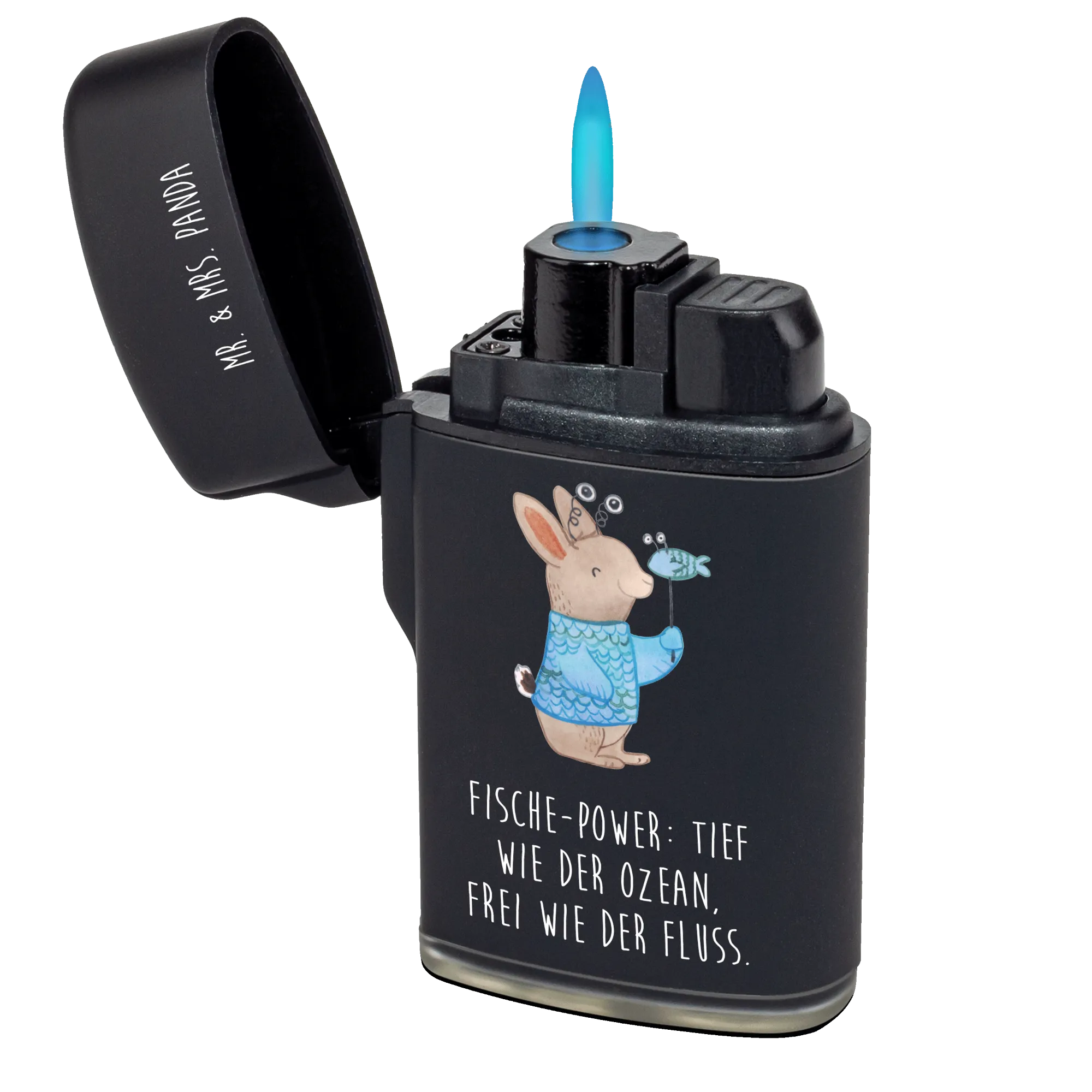 Die liebevolle Illustration mit dem fröhlichen Häschen, das in einem Fischkostüm steckt, strahlt pure Lebensfreude aus und erzählt die Geschichte der Fische, die tief wie der Ozean und frei wie der Fluss sind. Es ist nicht nur ein Feuerzeug, sondern auch das ideale Geburtstagsgeschenk für Freunde oder Familie, die das Sternzeichen Fische tragen.