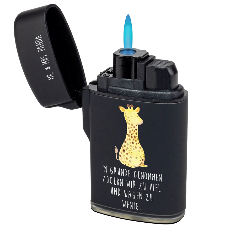 Entdecke das wunderbar lustige Feuerzeug mit der niedlichen Giraffe Zufrieden aus der Afrika Kollektion von Mr. & Mrs. Panda! Dieses innovative Sturmfeuerzeug ist nicht nur ein praktisches Zubehör, sondern auch ein schöner Blickfang für alle, die das Abenteuer Afrika lieben.