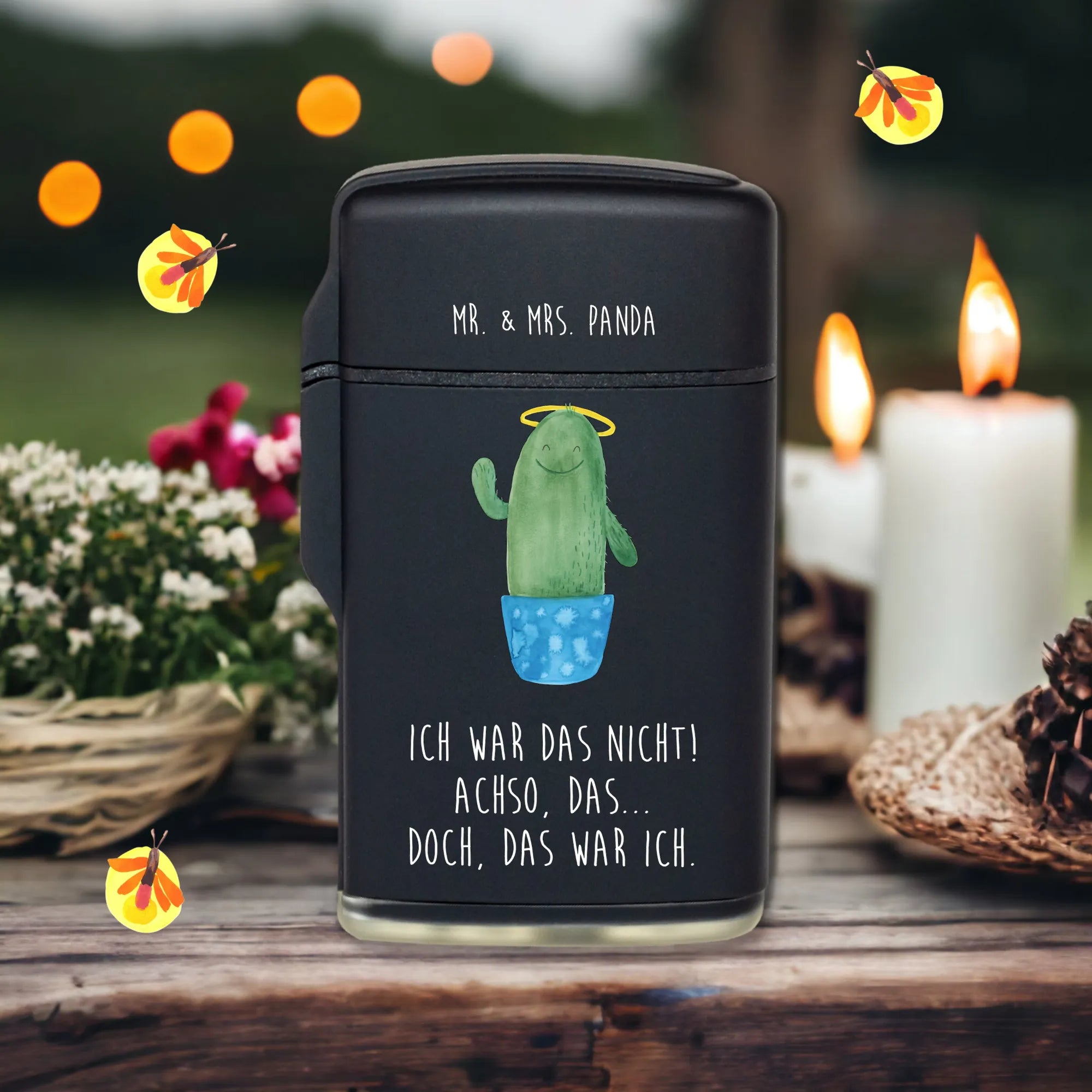 Das Feuerzeug Kaktus Heilig von Mr. & Mrs. Panda ist mehr als nur ein Feuerzeug – es ist ein kleines Kunstwerk, das jeden Moment aufhellt! Mit seinem niedlichen Kaktus-Motiv, das liebevoll in Aquarell von Mrs. Panda gestaltet wurde, sorgt dieses einzigartiges Feuerzeug für gute Laune. Es ist nachfüllbar und stufenlos regelbar, was es ideal für Innen- und Außenanwendungen macht. Egal, ob du ein Feuermagier am Lagerfeuer bist oder einfach nur ein Licht für deinen geliebten Kamin brauchst, dieses Feuerzeug ist perfekt für jeden Anlass.