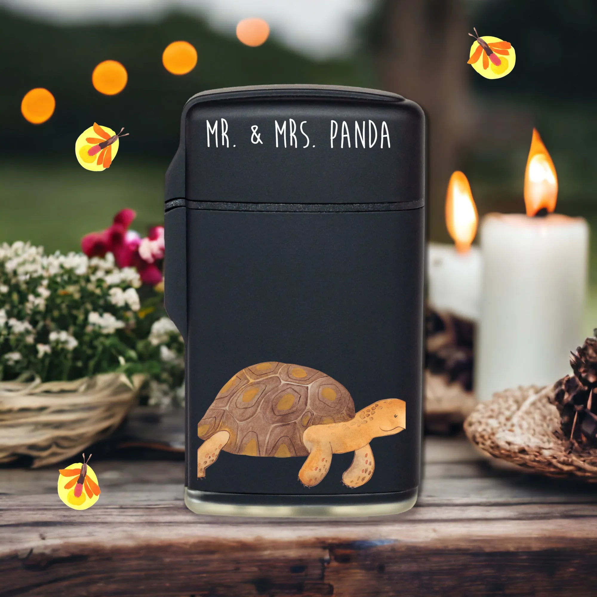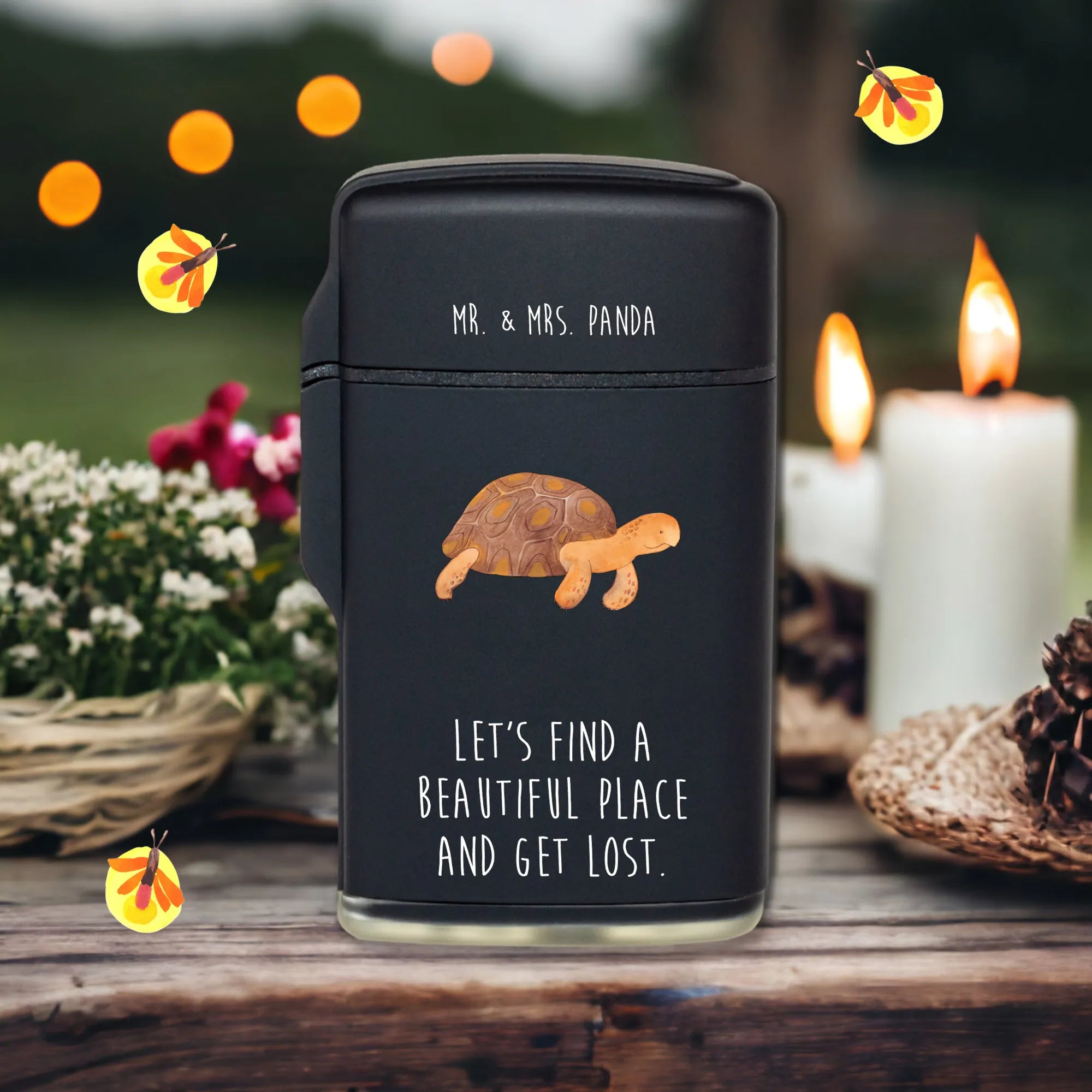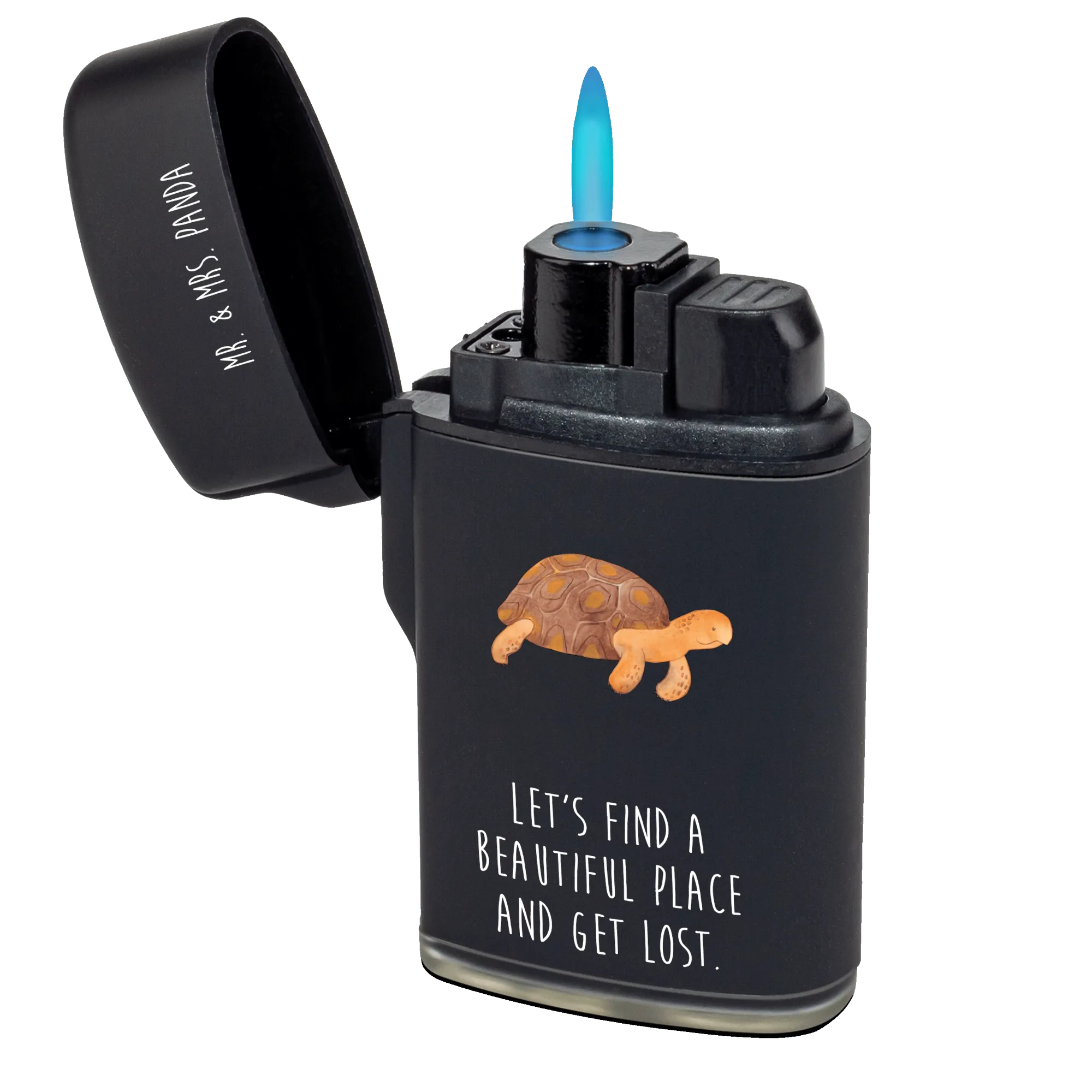 Entdecke das fantastische Feuerzeug mit dem schönen Motiv der Schildkröte aus der Meerestiere Kollektion von Mr. & Mrs. Panda. Dieses einzigartige Feuerzeug ist nicht nur funktional, sondern auch ein echter Hingucker. Mit dem charmanten Entwurf einer Schildkröte, die in einer entspannten Haltung marschiert, inspiriert es dazu, das Leben in vollen Zügen zu genießen und Abenteuer zu suchen. Der bezaubernde Spruch 'Let's find a beautiful place and get lost.' unterstreicht das Gefühl von Freiheit und Wanderlust.