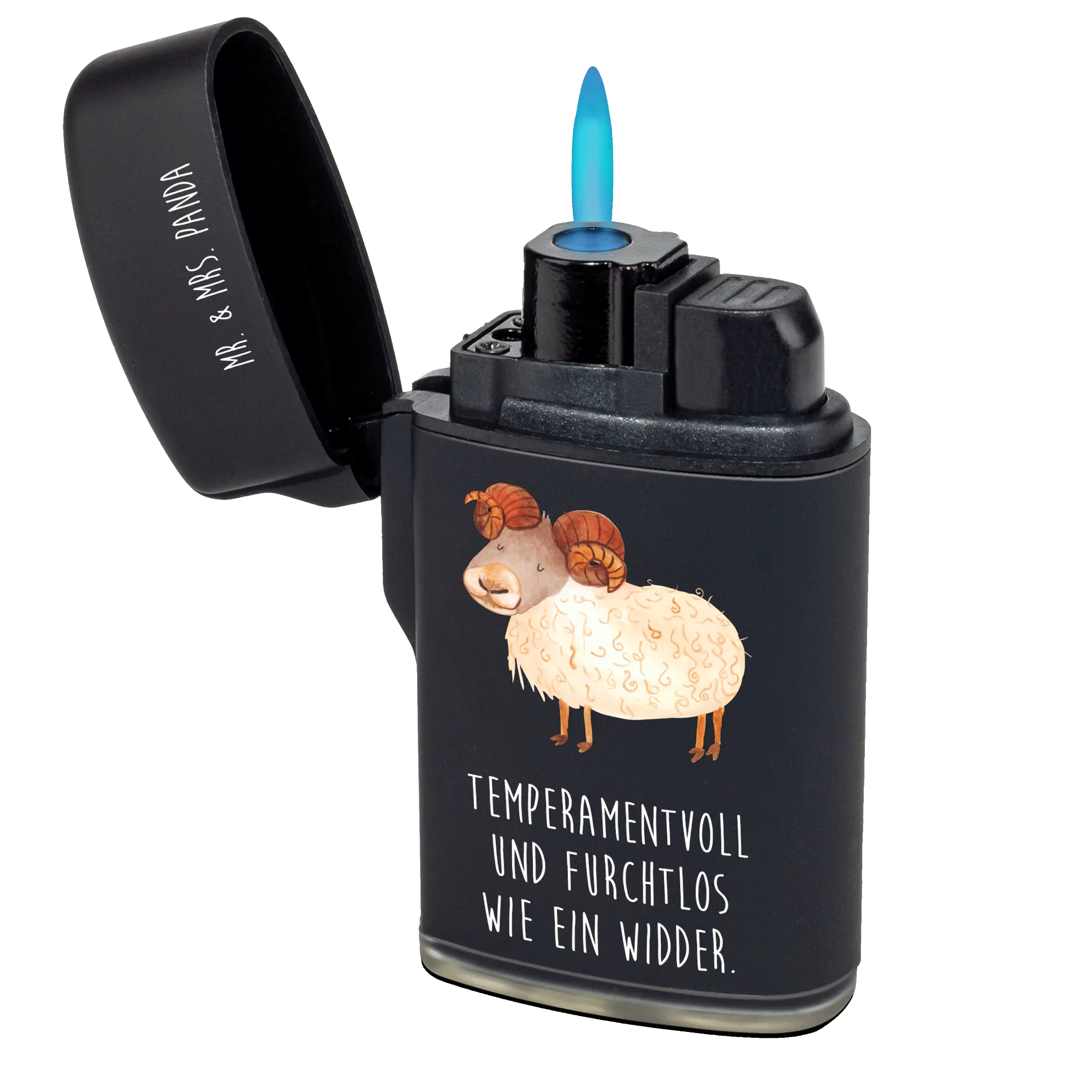 Der Widder, temperamentvoll und furchtlos, ist nicht nur im Horoskop ein wahrer Energiebündel, sondern bringt auch mit seinem coolen Design alle zum Schmunzeln. Unser Feuerzeug ist hochwertig bedruckt, der Druck zeigt den süßen Widder mit seiner charakteristischen Statur.