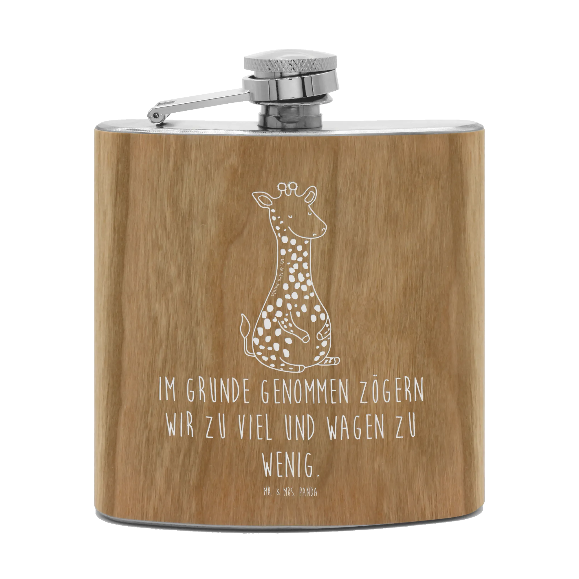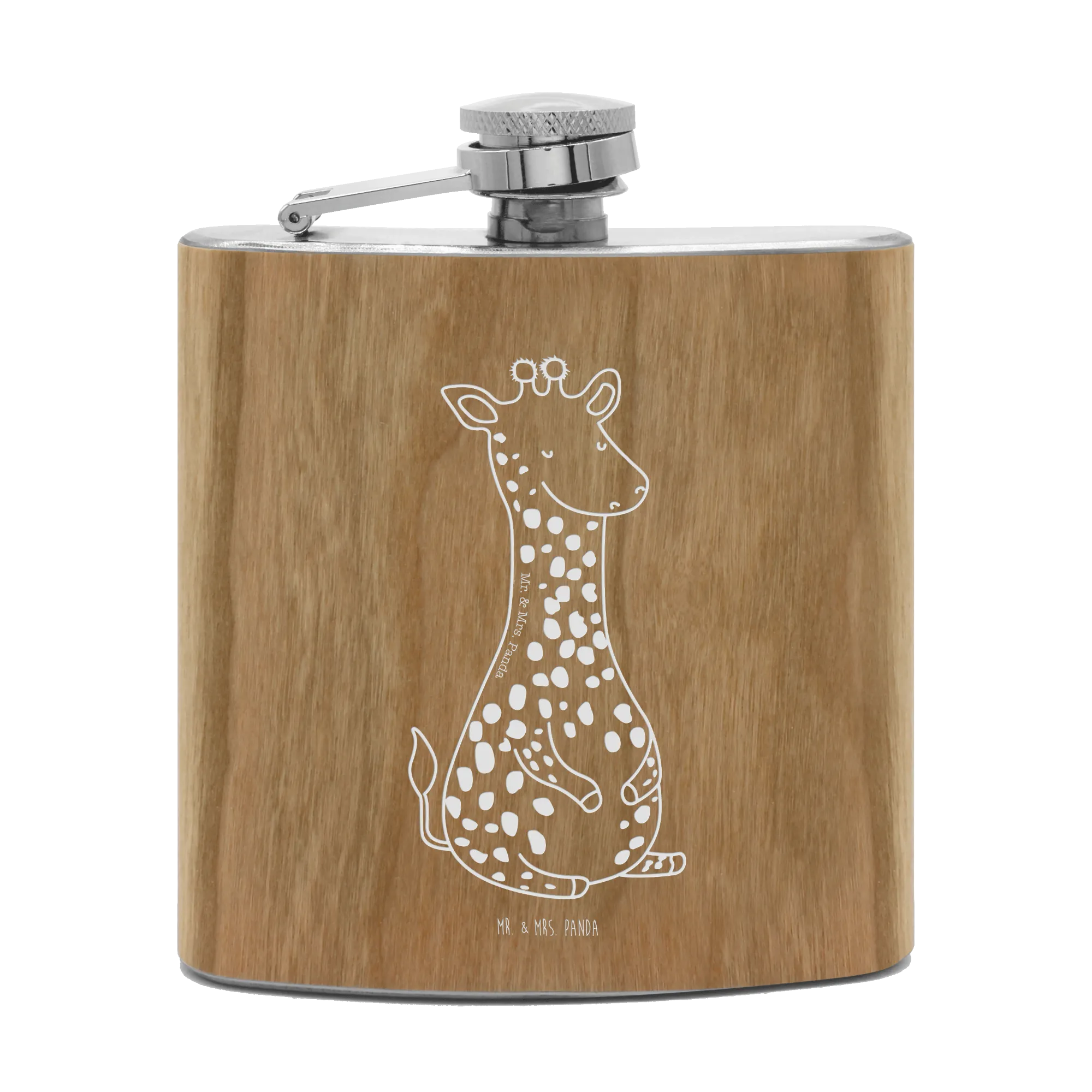 Entdecke den perfekten Begleiter für alle Abenteuer mit unserem hochwertigen Flachmann 'Giraffe Zufrieden' aus der Afrika Kollektion von Mr. & Mrs. Panda.