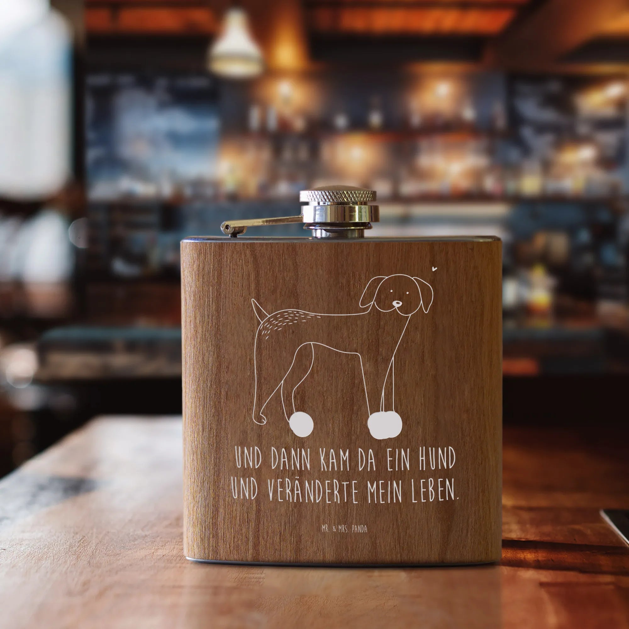 Die hochwertige Gravur sorgt dafür, dass dein Flachmann nicht nur schön aussieht, sondern auch lange hält. Perfekt für Junggesellenabschiede oder einfach als kleines Geschenk für den Hundebesitzer in deinem Freundeskreis. Das niedliche Design und das inspirierende Motto „Und dann kam da ein Hund und veränderte mein Leben.“ machen diesen Flachmann zum idealen Geschenk für jede Gelegenheit.