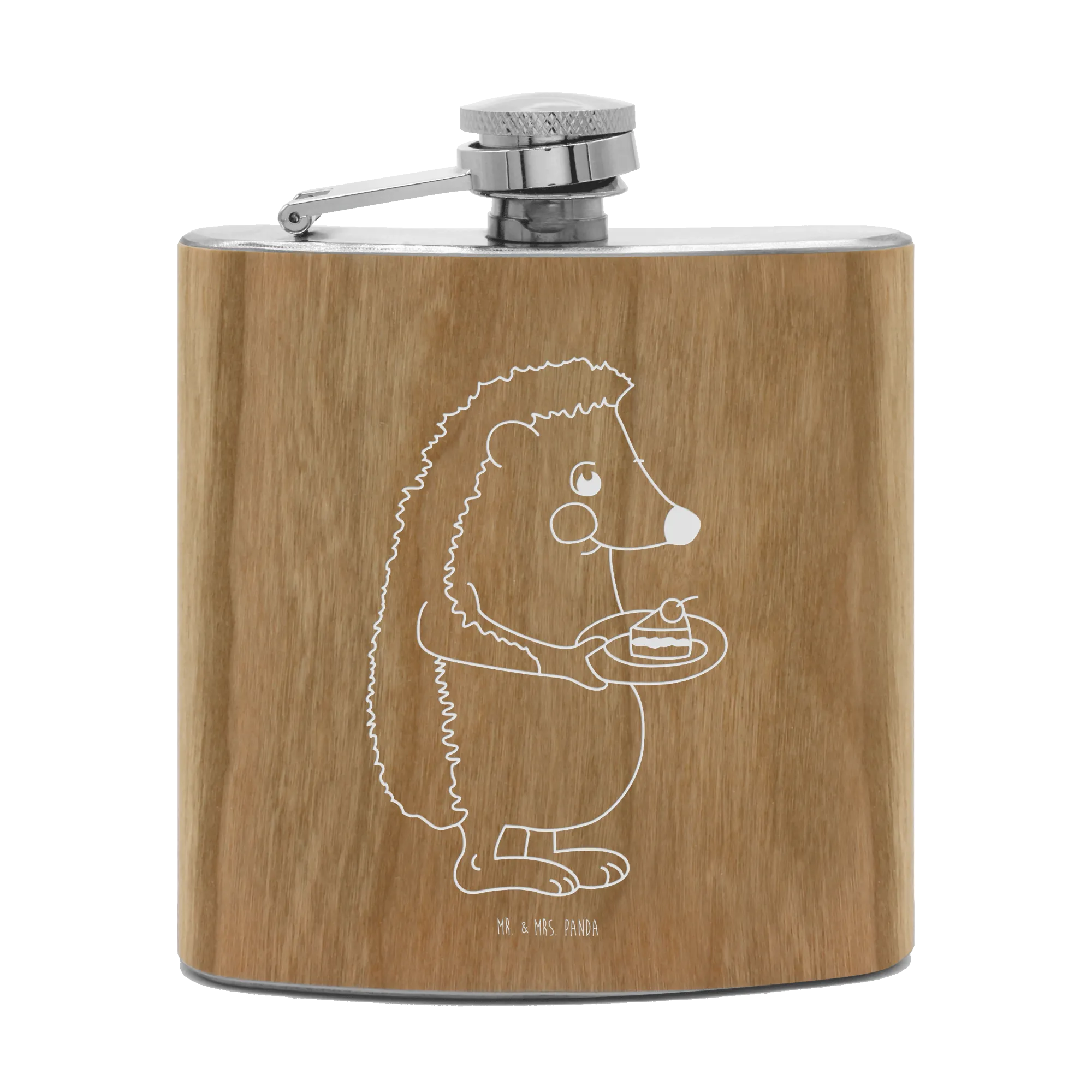 Entdecke den niedlichen Flachmann von Mr. & Mrs. Panda mit dem liebevollen Motiv 'Igel mit Kuchenstück'. Dieser hochwertige Flachmann aus Edelstahl ist der perfekte Begleiter für all jene, die Kuchen genauso lieben wie das Leben. Der kleine Igel, der voller Freude ein Stück Kuchen präsentiert, sorgt für gute Laune und bringt jeden zum Lächeln!