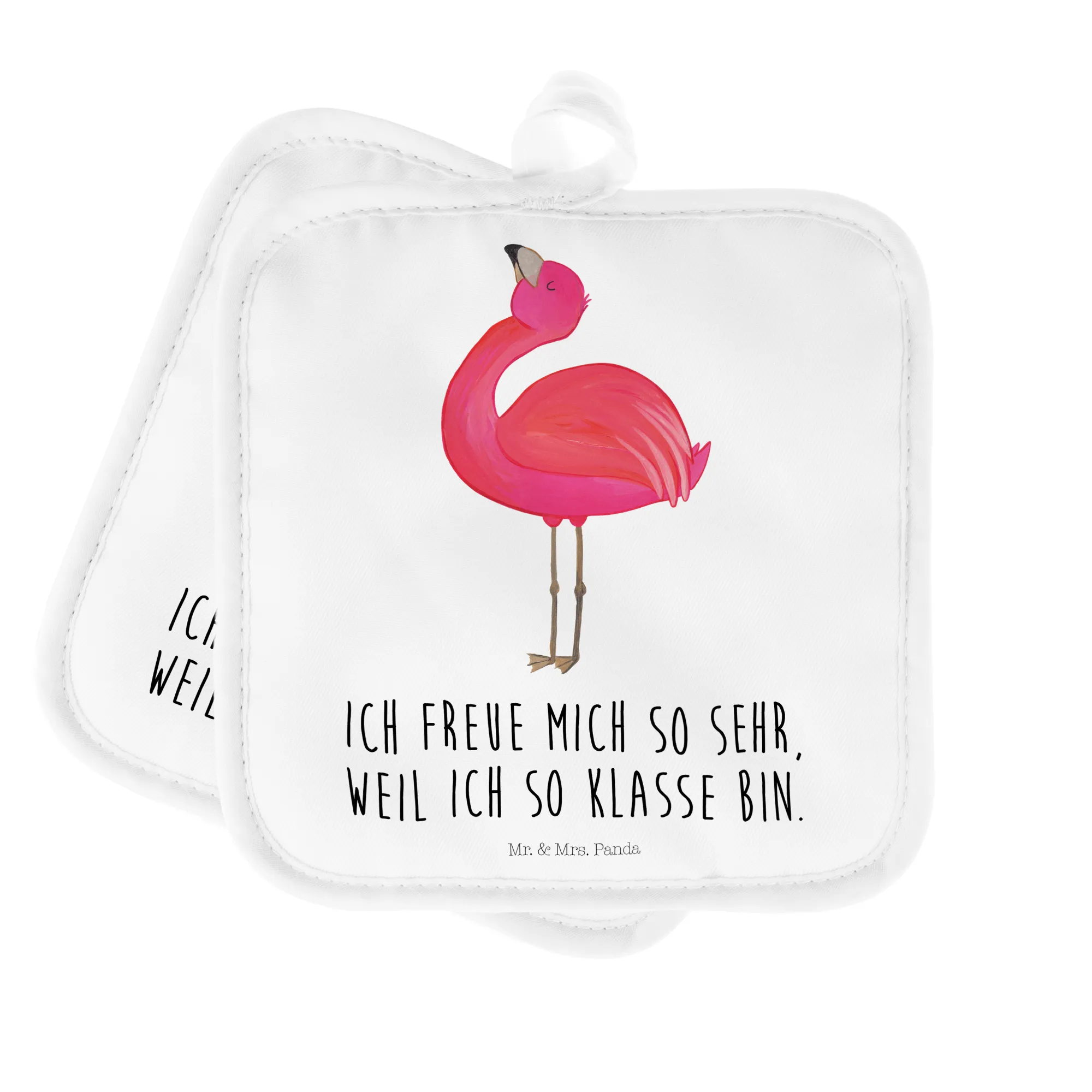 2er Set Topflappen Flamingo stolz - mit Spruch - Weiß